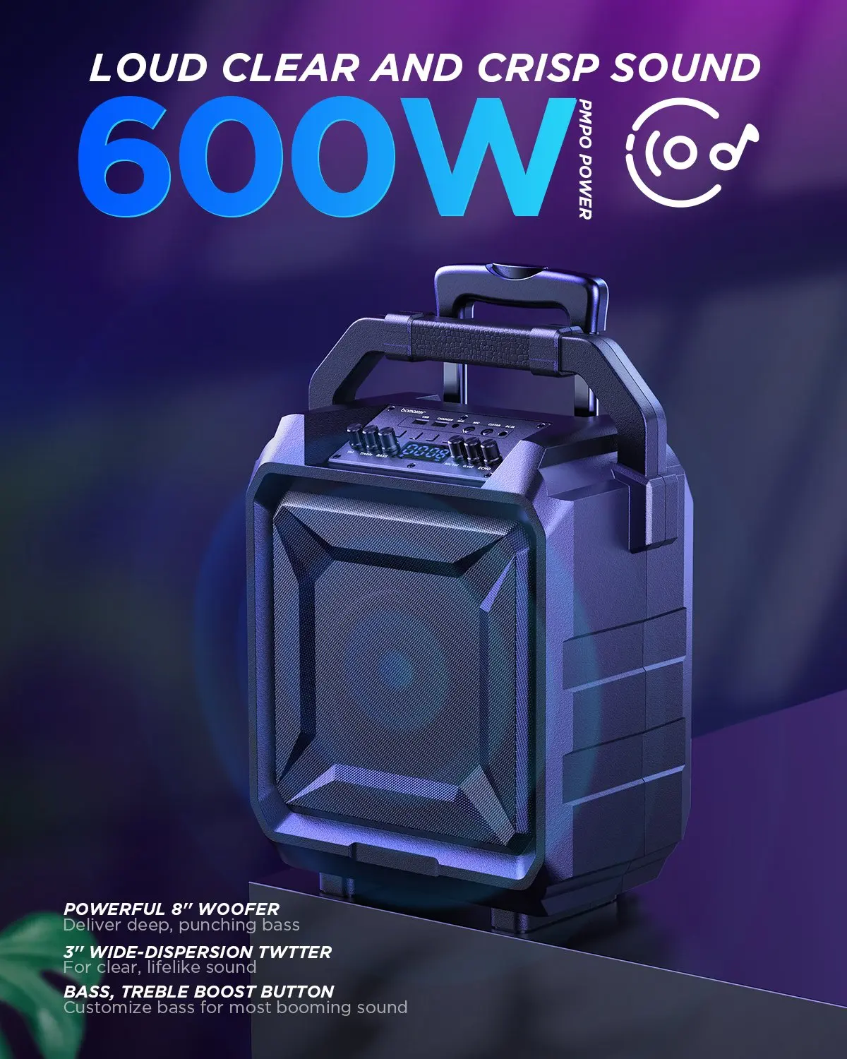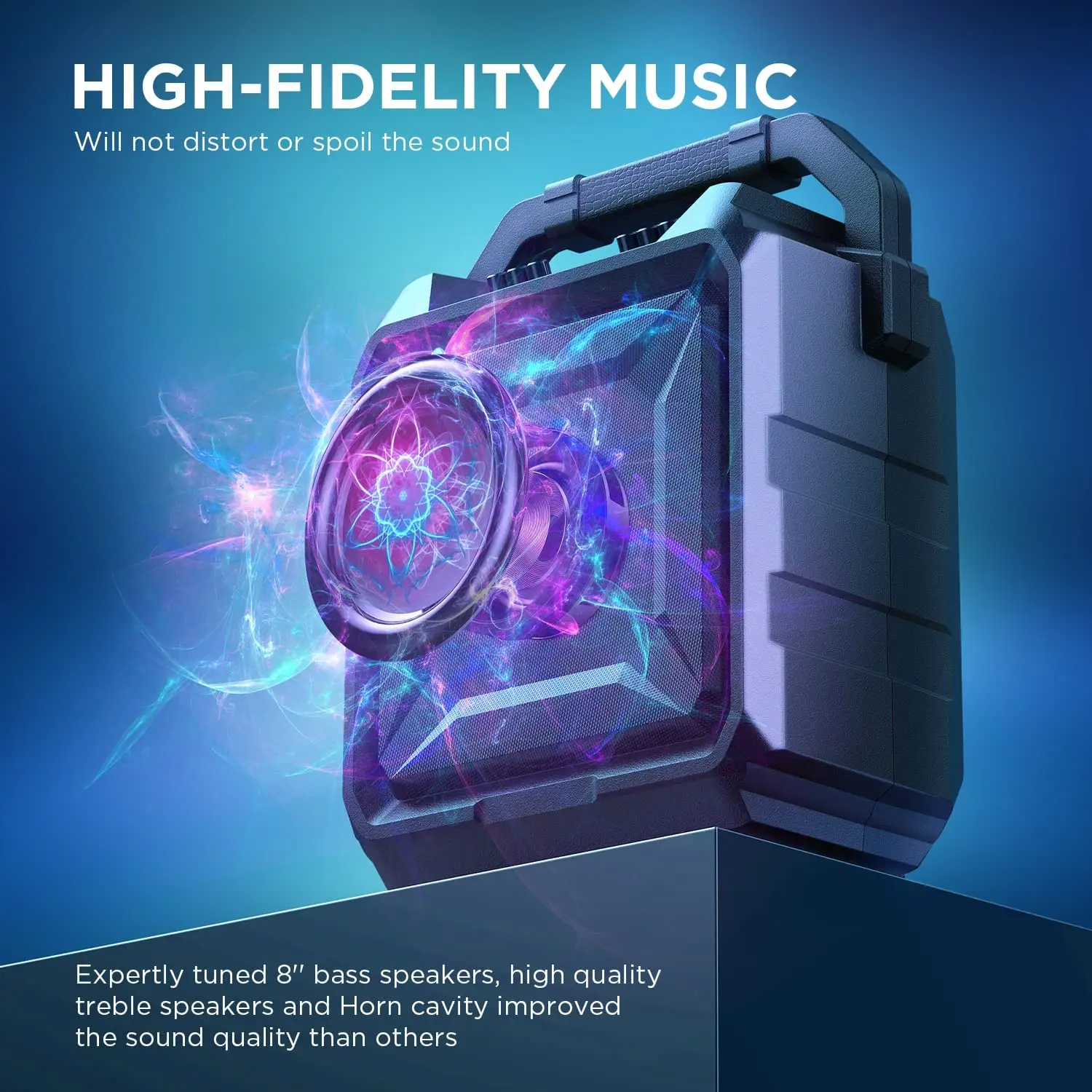 Используйте новый пластмассовый динамик 8 "со сверхнизкочастотным звуком и качественный твитер 3", который может поставить гораздо Кристальный голос и Громкий бас реалистичный звук, чем дешевые колонки с бумажными краями.