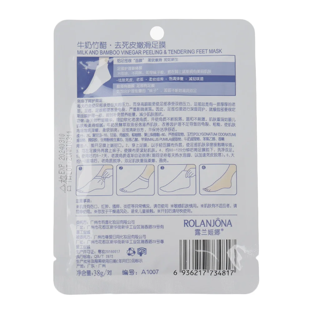 Описание: Тип изделия: маска для ног Материал: молоко, бамбук, уксус Количество: 1 пар/упак. маска для ног Вес: около 38 г Посылка включает в себя: 1 пара масок для ног Использование: 1. После очистки и сушки ног выньте маску для ног из пакета Примечание: Перед использованием, пожалуйста, Замочите ноги в тепле в течение 10 минут 2. Наденьте маску для ног и пленку, оберните пленку вокруг маски Прижмите ноги как можно ближе к маске. 3. Около 40 мин-60 мин позже, снимите маску для ног И краску, прежде чем вытереть сухим полотенцем 4. После очистки ног нанесите немного лосьона для ног, чтобы ноги были влажными и гладкими 5. Примерно через 1-2 недели жесткая омертвевшая кожа сойдет, а ваша кожа на ногах будет красивой и мягкой. Ожидания: После удаления масок и на следующий день ваши ноги становятся белыми и морщинистыми В следующие дни ваши ноги могут быть очень сухими. Люди, которые быстро реагируют, будут видеть шелушение ног, другие могут видеть их растрескивание кожи, некоторые могут не видеть эти реакции. В зависимости от того, как вы реагируете на маски, вам может потребоваться 2-3 пары для достижения желаемых результатов. Предостережения: Если у вас есть ранки, отеки, зуд, воспаление или другие отклонения на ноге, пожалуйста, прекратите использовать их Чехол с аллергией или чувствительной кожей, пожалуйста, не используйте его