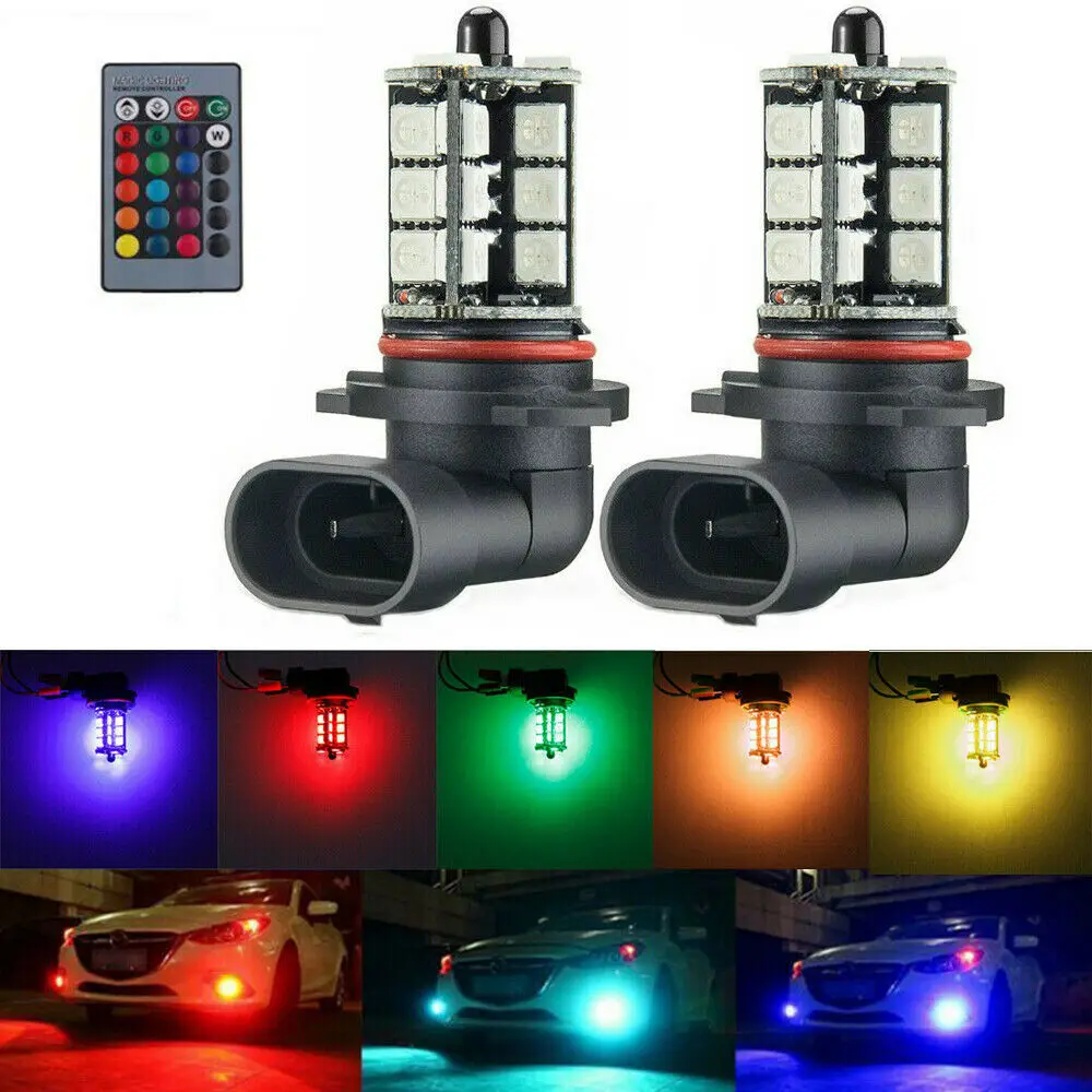 2 шт., автомобильный противотуманный светильник, ЛАМПА H3 H4 9006 9005 H7 H8 H9 880 881 H11, атмосферная фара DRL комплект 5050 27SMD светодиодный RGB пульт дистанционного управления