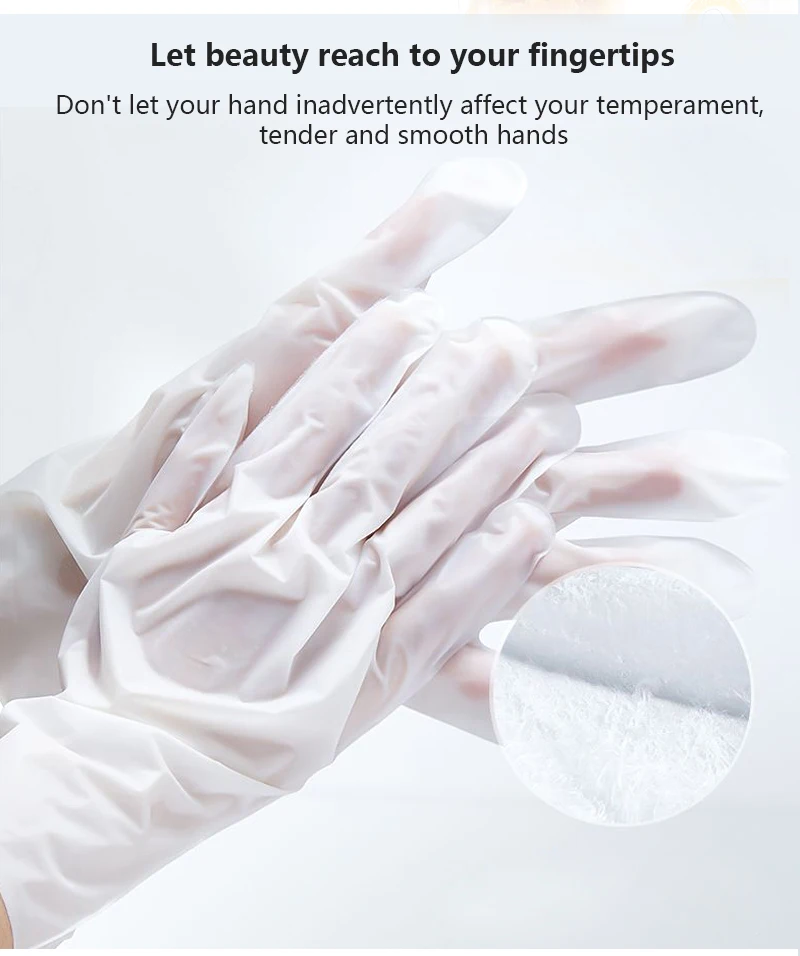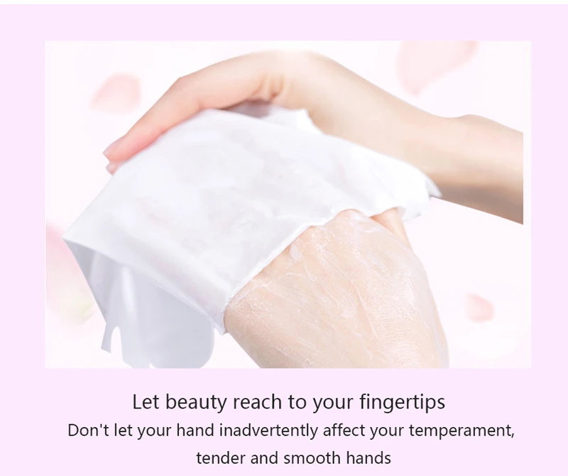 Использование: Шаг 1. Очистите руки, удалите изделие, нарежьте ножницами комплекты ручной пленки. Шаг 2. Набор пленки начинал делать ручной легкий ламинированный тканевый материал рука в близком соприкосновении с мембранной эссенцией. (Можно надевать Обычные перчатки, ткань более близка к коже, так что пленка может свободно работать). Шаг 3. Около 20-40 минут, после того как пленка отделится от рук, протрите руки в течение трех минут, сразу же заметны отбеливающие руки. Шаг 4. Одна рука восстановит естественный белый, гладкий и мягкий, как ребенок.