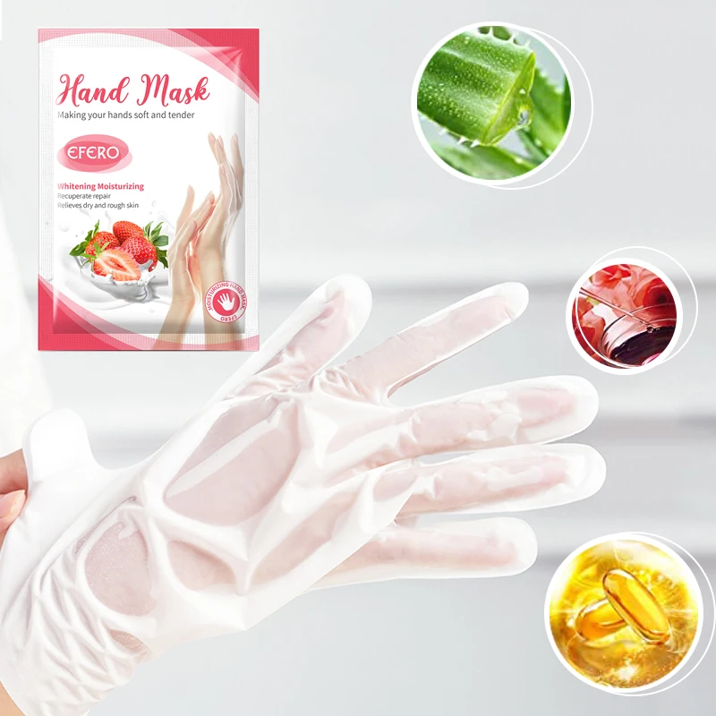 Тип изделия: маска для рук Количество: 8 пар Состав: клубника, молочная кислота, алоэ, глицерин Аромат: клубника Подходит для: сухой кожи рук, грубой кожи, легкого зимнего обморожения и густой кутикулы рук