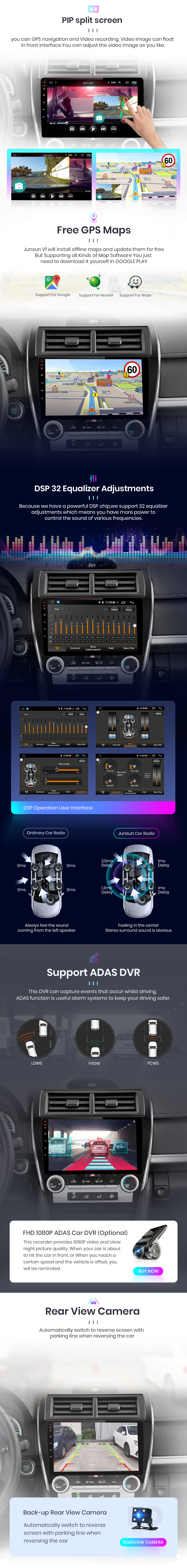 > 10 дюймов 2.5D емкостный Экран + 4 ядра 1,2 ГГц Процессор + DDR3 1 ГБ/2 ГБ/4 ГБ флэш-памяти (опционально) + 16 Гб/32 ГБ/64 Гб памяти (опционально) + встроенный Wifi (4G опционально) + gps-навигация (карта Бесплатное обновление) + управление рулевым колесом + зеркальная связь + Bluetooth-Совместимость + Встроенный микрофон + FM/AM + RDS + Поддержка USB DVR ADAS + Поддержка Европейской DAB функции + 1080P видео воспроизведение + HD 1024*600 + Поддержка системы контроля давления в шинах + Поддержка голоса Управление