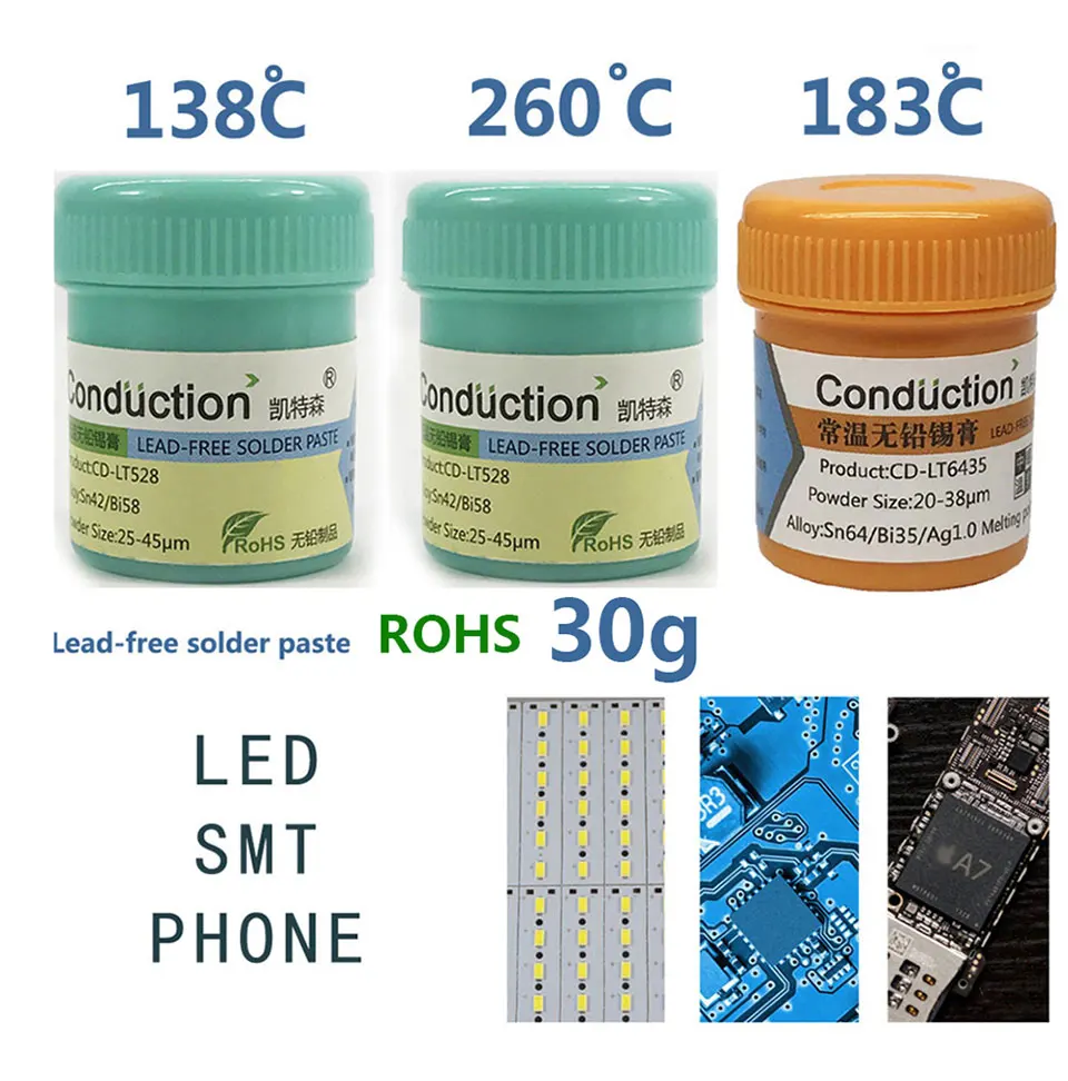 Бессвинцовая паяльная паста для обслуживания пайки олова для iPhone slurry 138 183 260 градусов Защита окружающей среды Оловянная грязь ЦП Олово