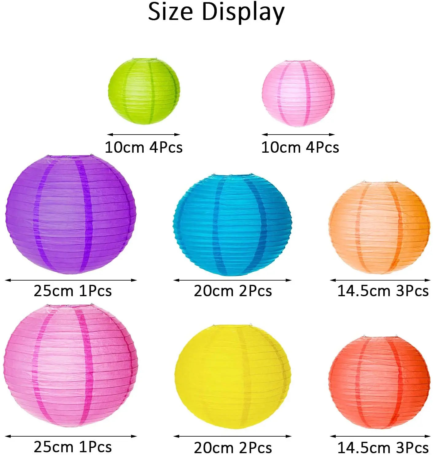 Набор бумажных фонарей: Вы получите 20 красочных подвесных бумажных фонарей (4 разных размера: 4 ", 6", 8 "и 10"). Вы можете поставить светодиодные фонари на бумажные фонари. Подходит для украшения летних ночей в саду, для создания фантастической и романтической атмосферы освещения.