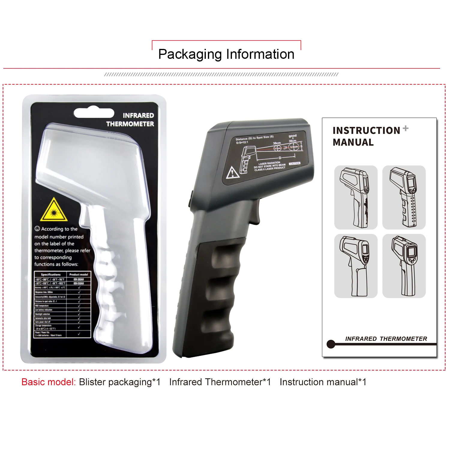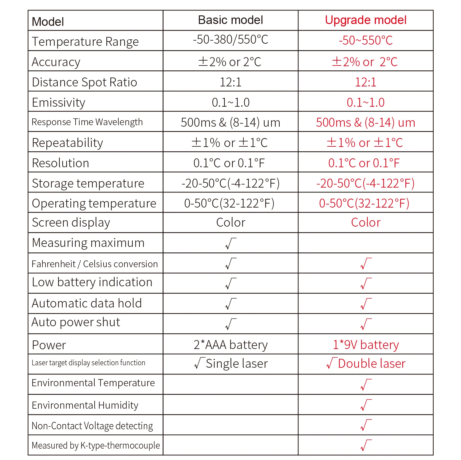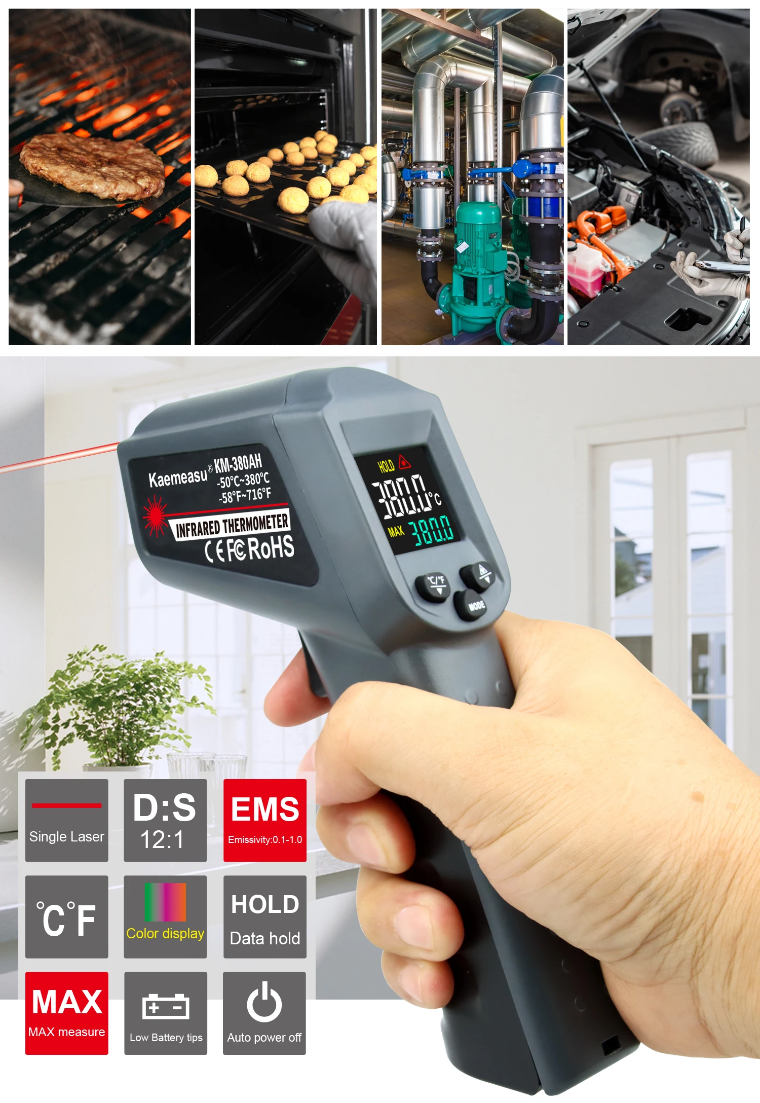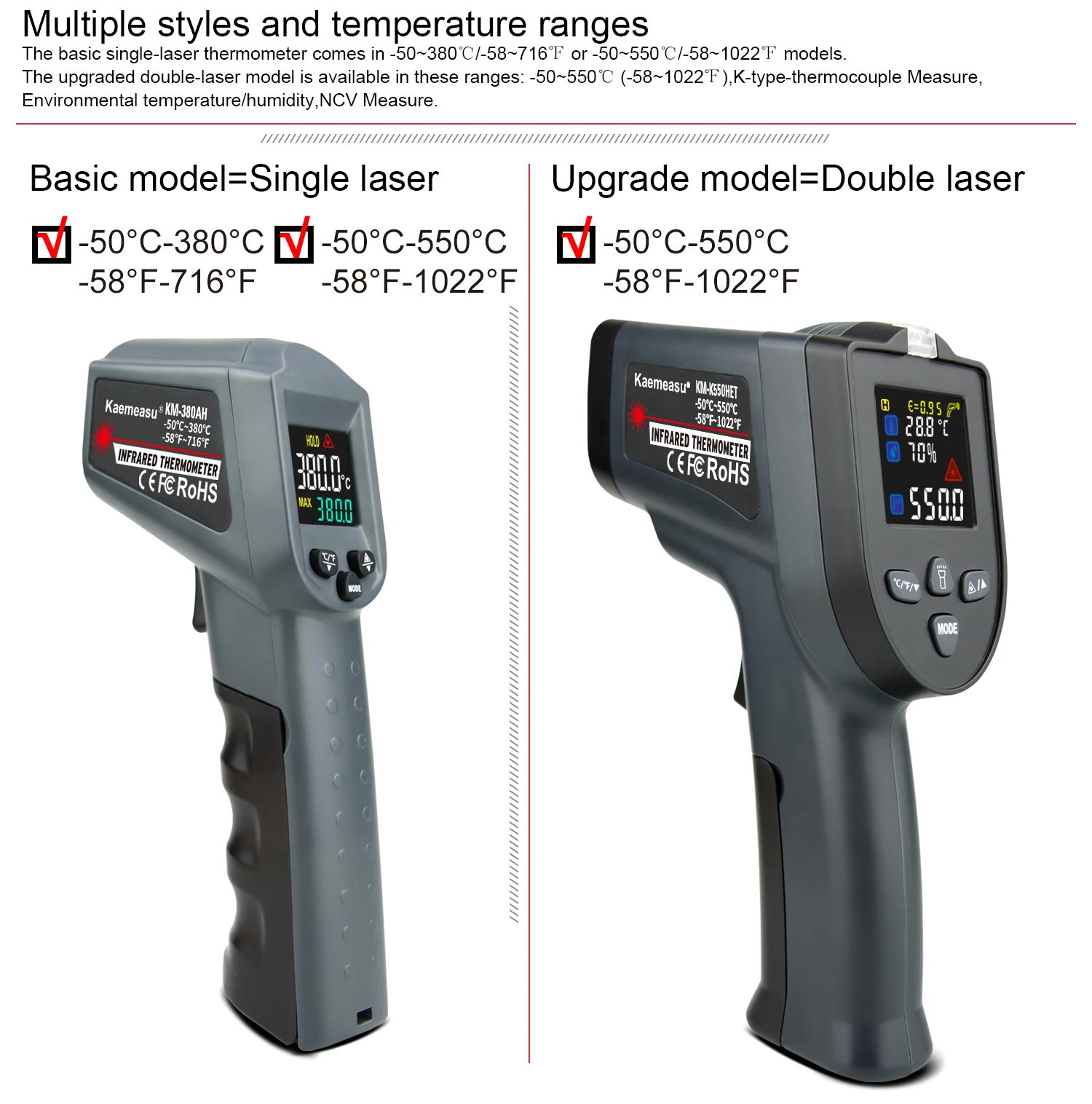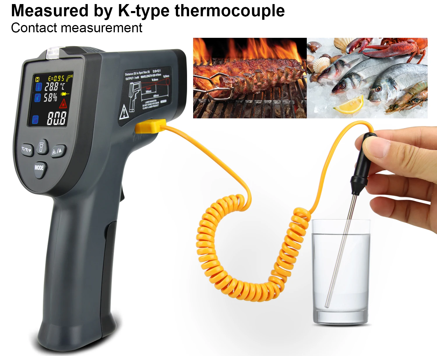 Диапазон измерения температуры термопары типа K: -50 ~ 500 градусов (только KM-K550HET)