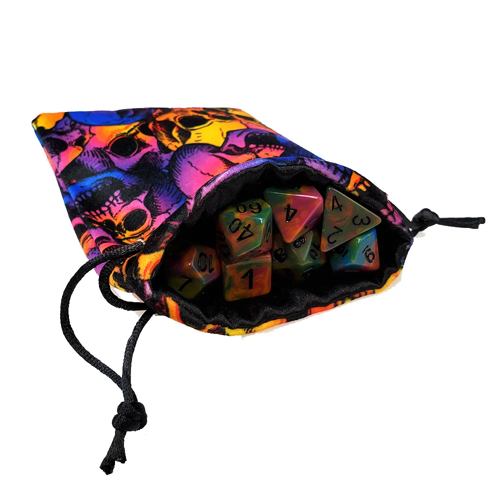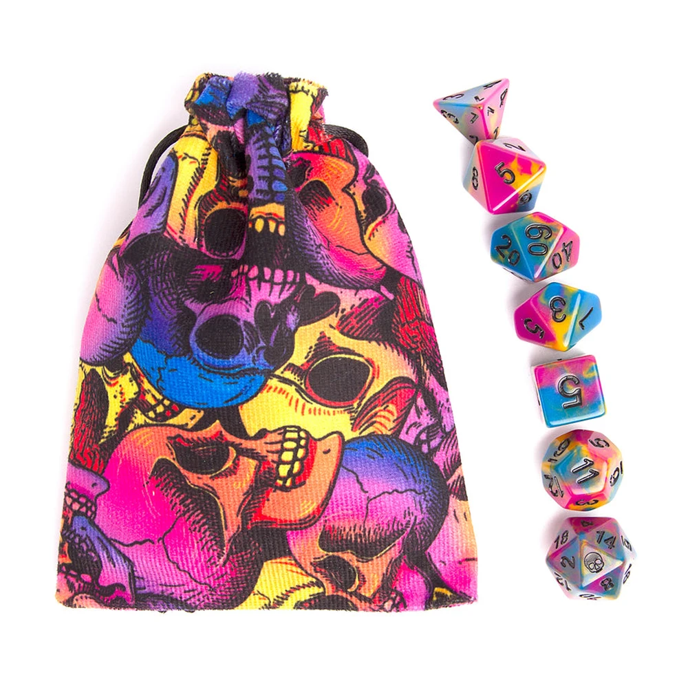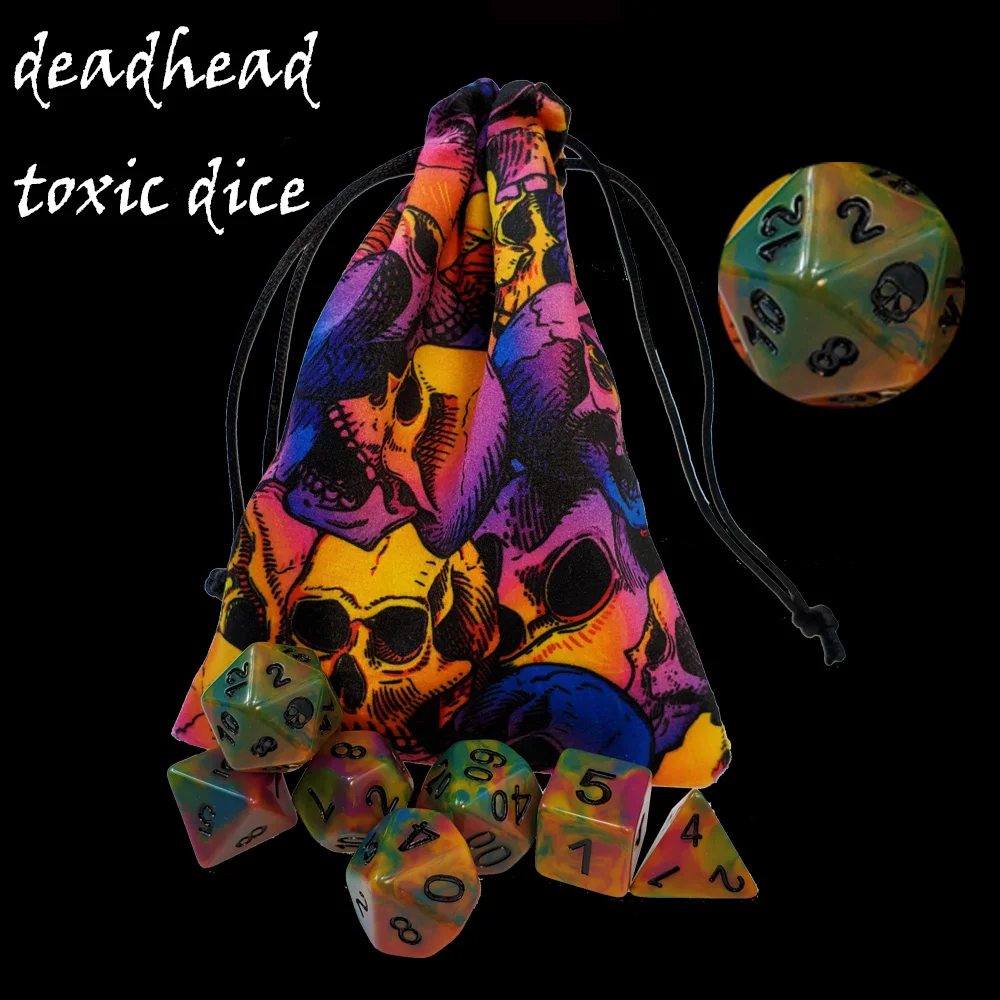 2). Набор темных радужных/токсичных игральных костей с подходящим мешочком.