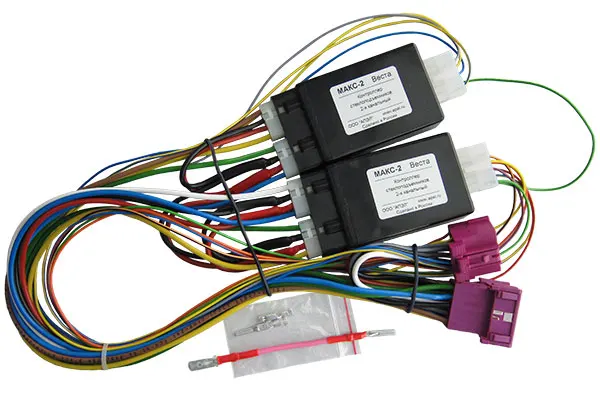 Контроллер МАКС-2 Vesta предназначен для автоматического управления стеклоподъёмниками автомобиля. Комплект модуля МАКС-2 Веста оснащён жгутом проводов с разъёмами для подключения без нарушения штатной проводки к кнопкам стеклоподъёмников автомобилей LADA Vesta.