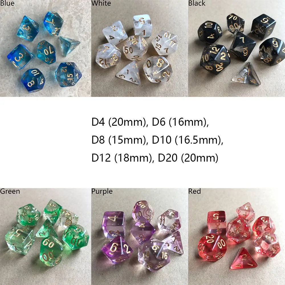Спецификация: Материал: акрил Вес: 30 г Цвет: как показано Размер: как показано Характеристика: -Легко прокручивать и читать -Гладкая и прочная -Отличное ощущение Подходит для игры: настольные игры, настольные ролевые игры (DND Pathfinder), карточные игры, математические игры Примечание: 1. Из-за различных настроек монитора и светильник эффект, фактический цвет элемента может быть s светильник ly отличается от цвета, представленного на снимках. 2. Возможны отклонения в 1-5 мм вследствие измерений вручную. Посылка включает в себя: 7-Die/set 1 шт. 4 стороны, 1 шт. 6 сторон, 1 шт. 8 Сторон, 2 шт. 10 Сторон, 1 шт. 12 Сторон, 1 шт. 20 Сторон,