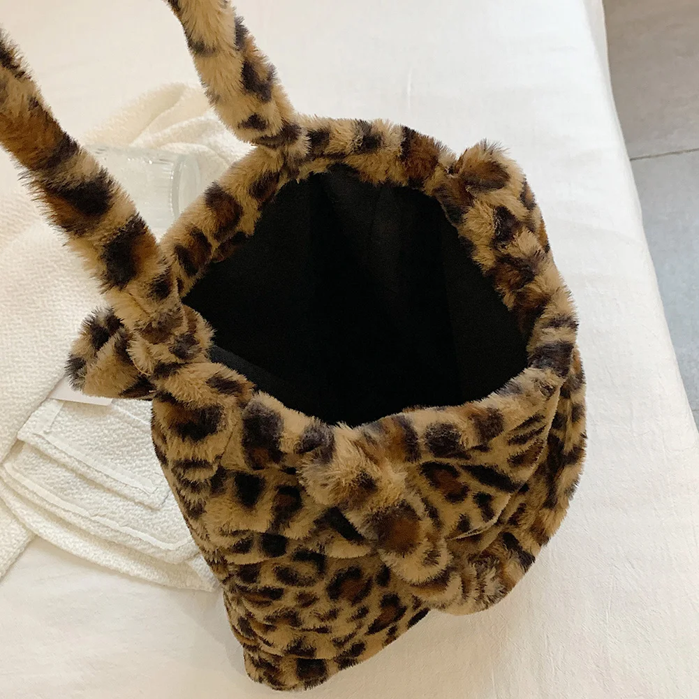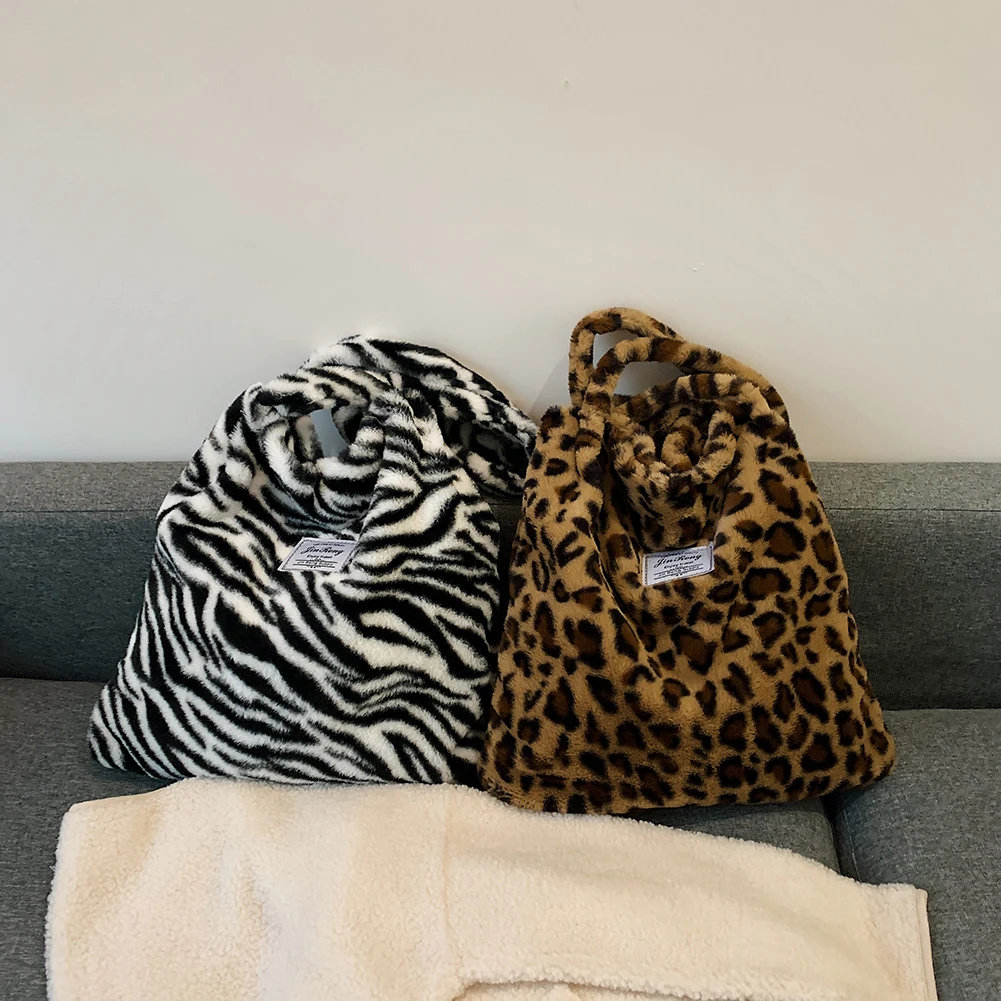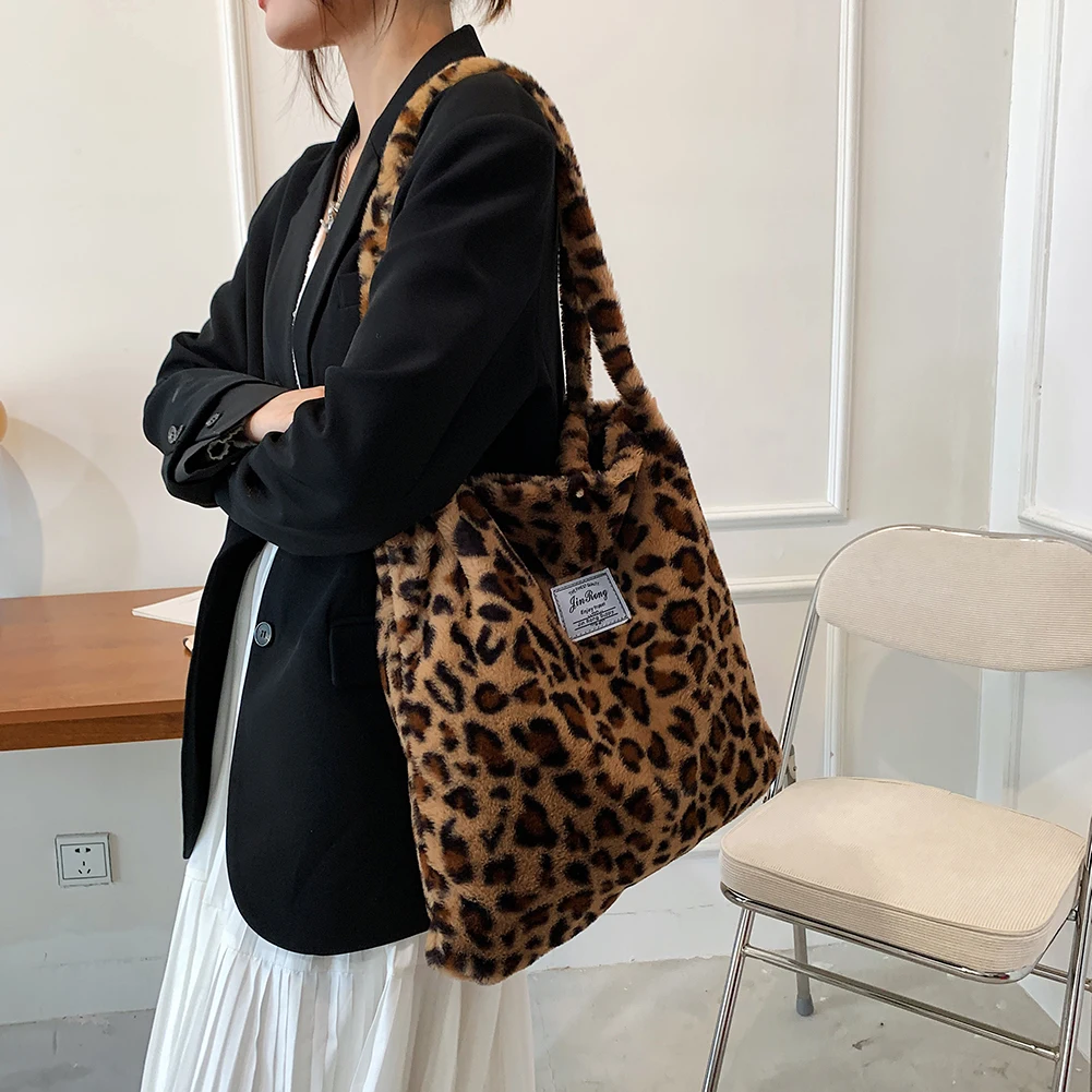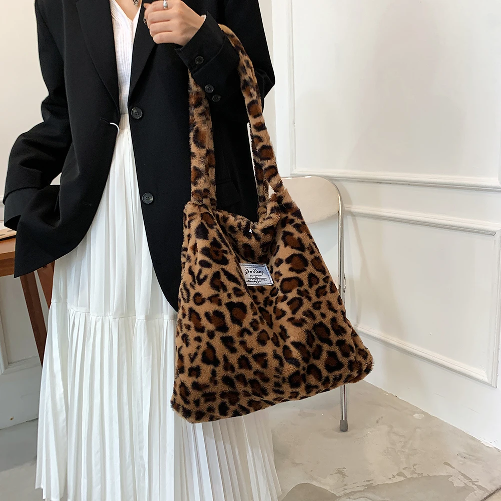 Женские сумки на плечо в стиле ретро с леопардовым принтом, новые зимние мягкие плюшевые сумки на плечо, женские большие пушистые сумки-тоут Capcity