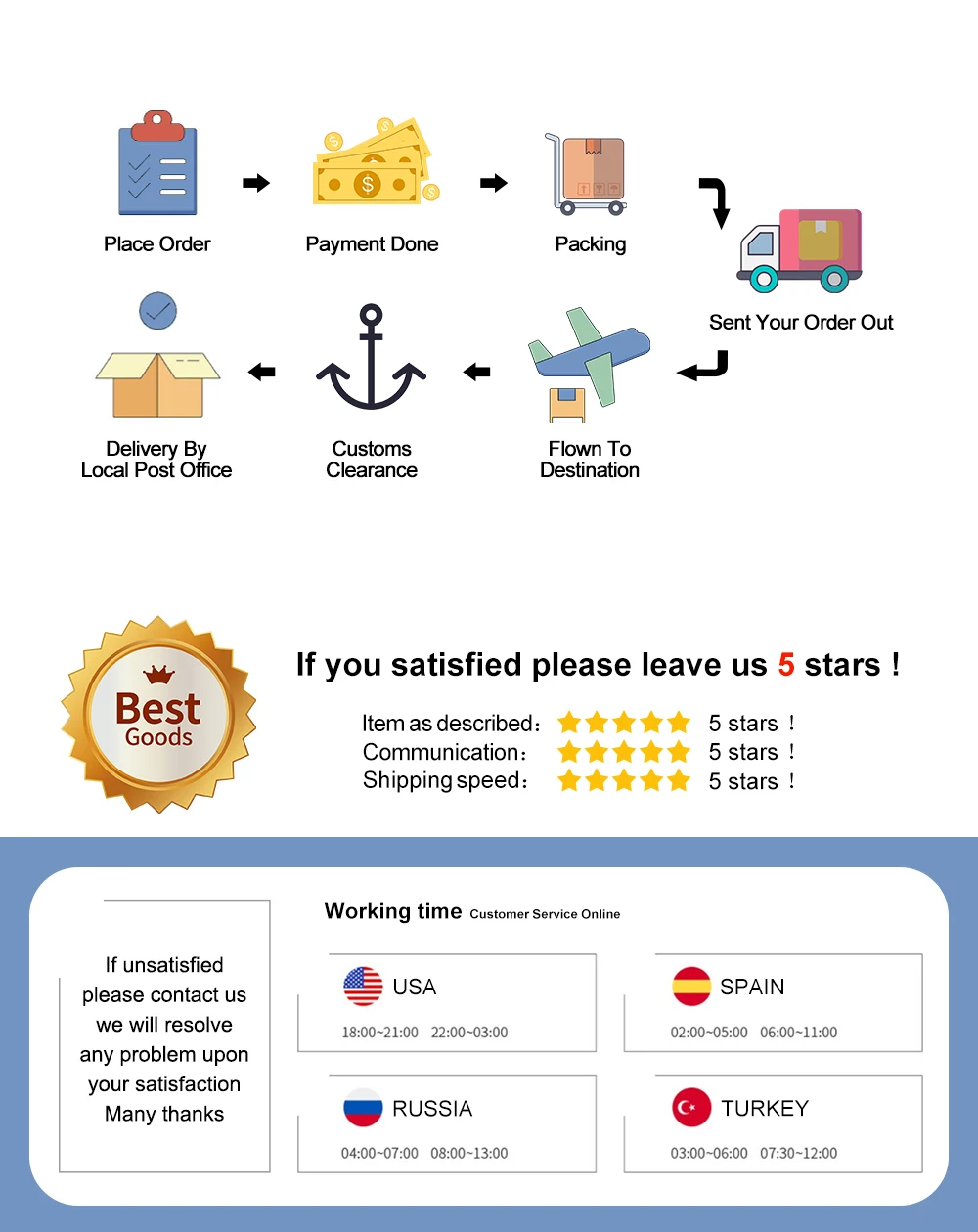 Мы ценим каждую оценку вас. Если вы удовлетворены нашей продукцией, пожалуйста, оцените нас 5 звезд!