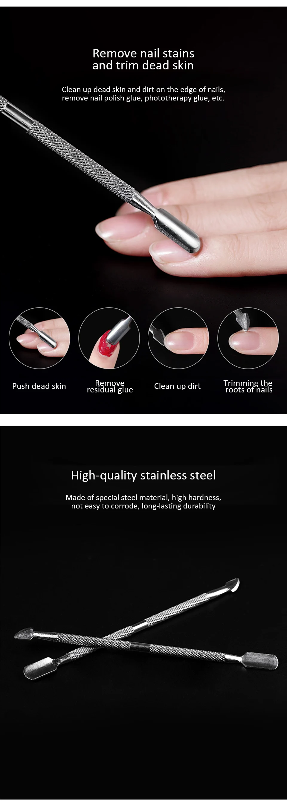 1 шт. двухсторонний нескользящий прочный Отшелушивающий толкатель для ногтей из нержавеющей стали для ежедневной чистки и ухода за ногтями принадлежности для маникюра