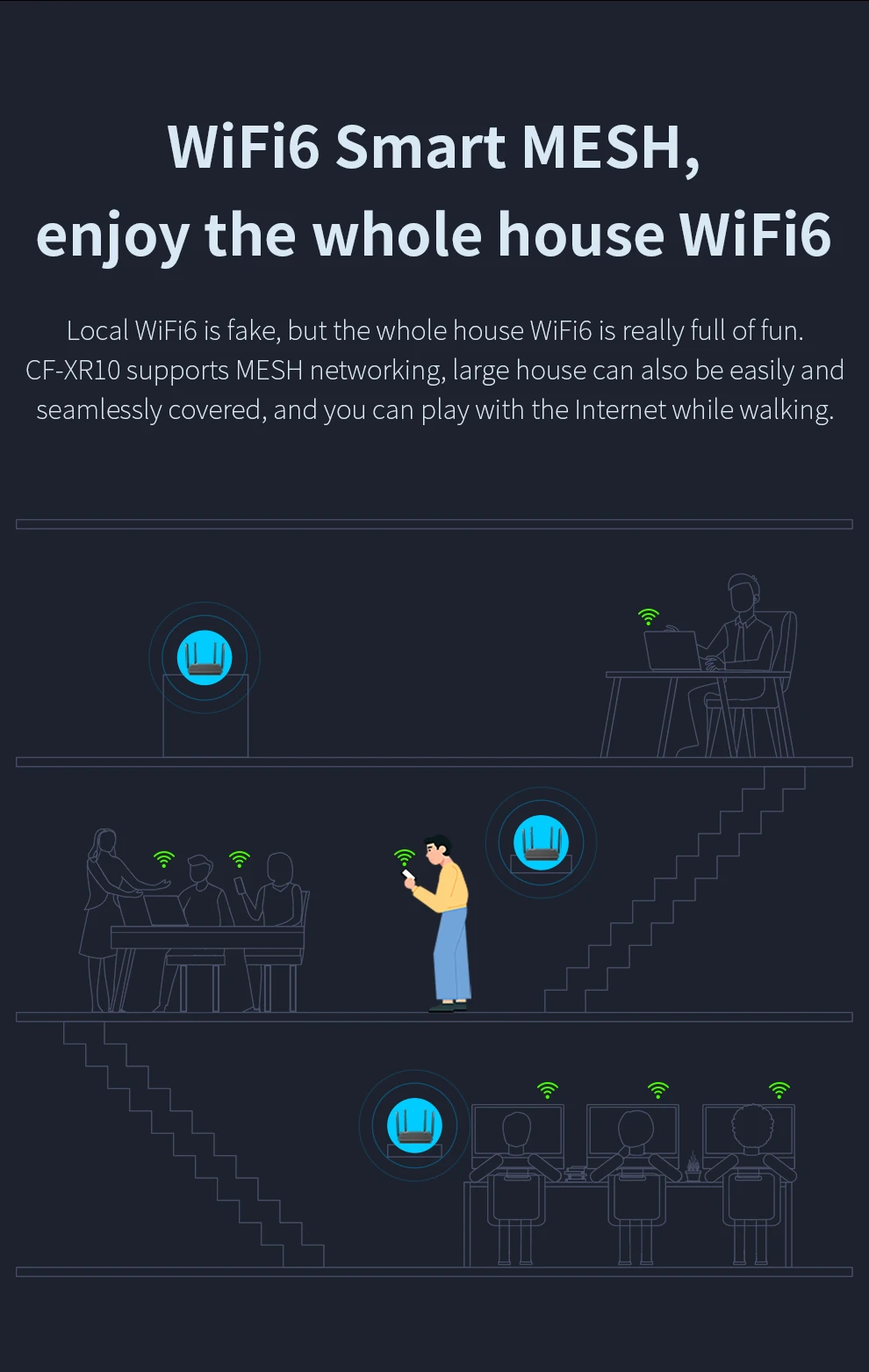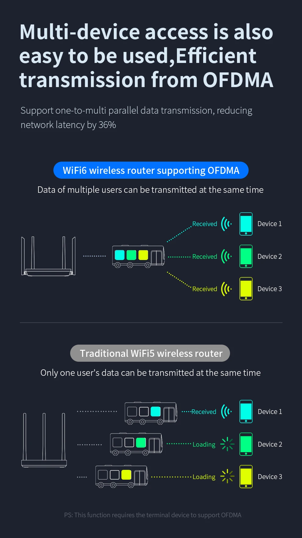 Поддерживает стандарт WiFi6 нового поколения, включая WiFi6's OFDMA,