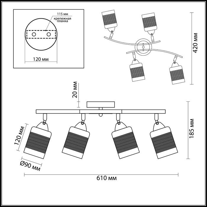 -Тип крепления: планка