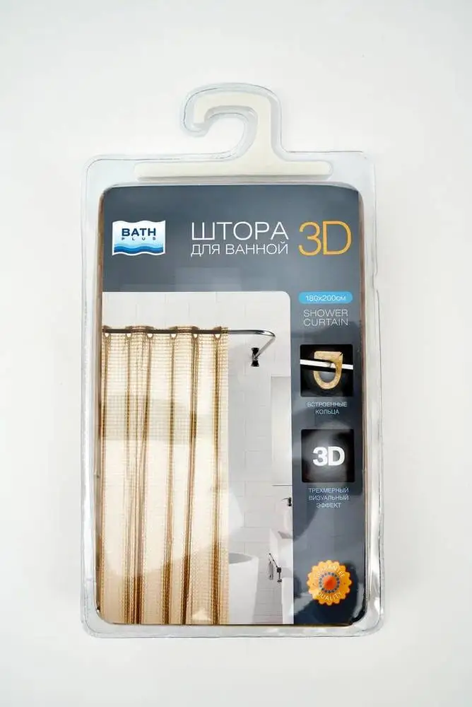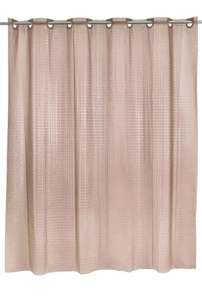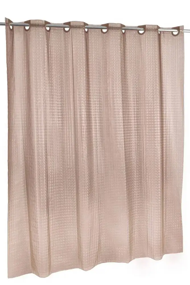Штора для ванной 3D эффект на больших встроенных разъемных кольцах (люверсы 50мм) в цвет шторы, которые легко закрепляются на карнизе, цвет бежево-коричневый, ширина 180 высота 200, высокая плотность, устойчивая от выцветания, водонепроницаемая