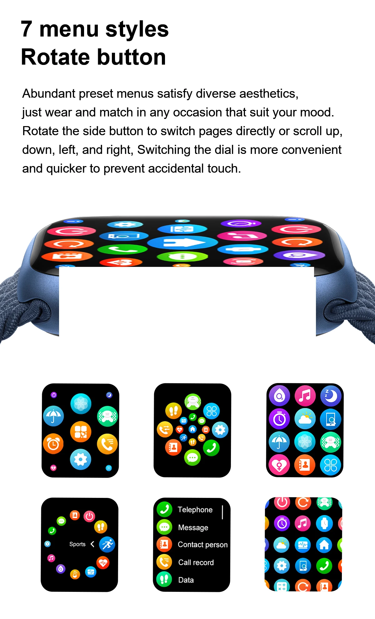 Телефонные звонки, синхронизация уведомлений, помощник AI, 7 стилей пользовательского интерфейса, несколько циферблатов часов, пользовательские лица, секундомер, регулировка яркости, bluetooth-совместимая музыка, пульт дистанционного управления камерой, погода, будильник, калькулятор, фонарик, режим DND и т. Д.