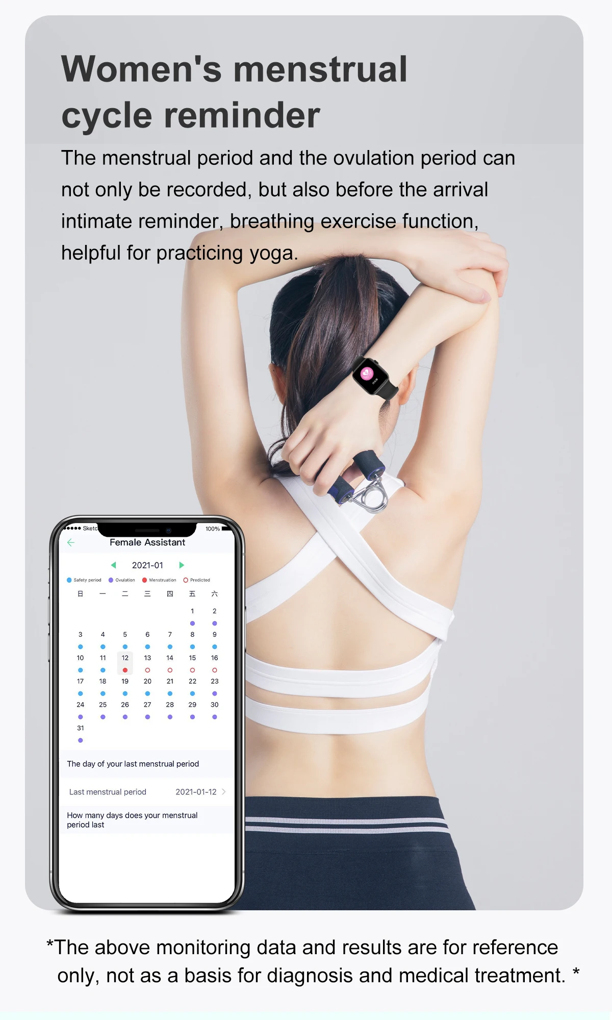 Монитор сердечного ритма, ЭКГ, трекер сна, трекер периода.