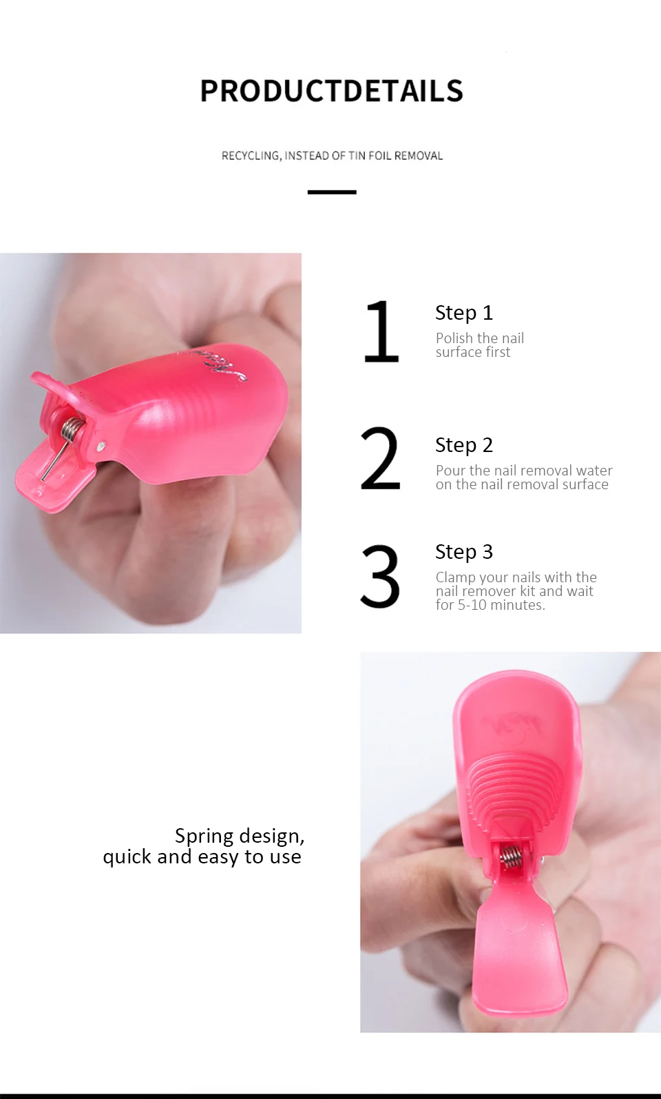 Сначала полируйте поверхность ногтя, налейте воду для удаления ногтей на поверхность ногтя, закрепите ноготь с помощью средства для удаления ногтей и подождите 5-10 минут.