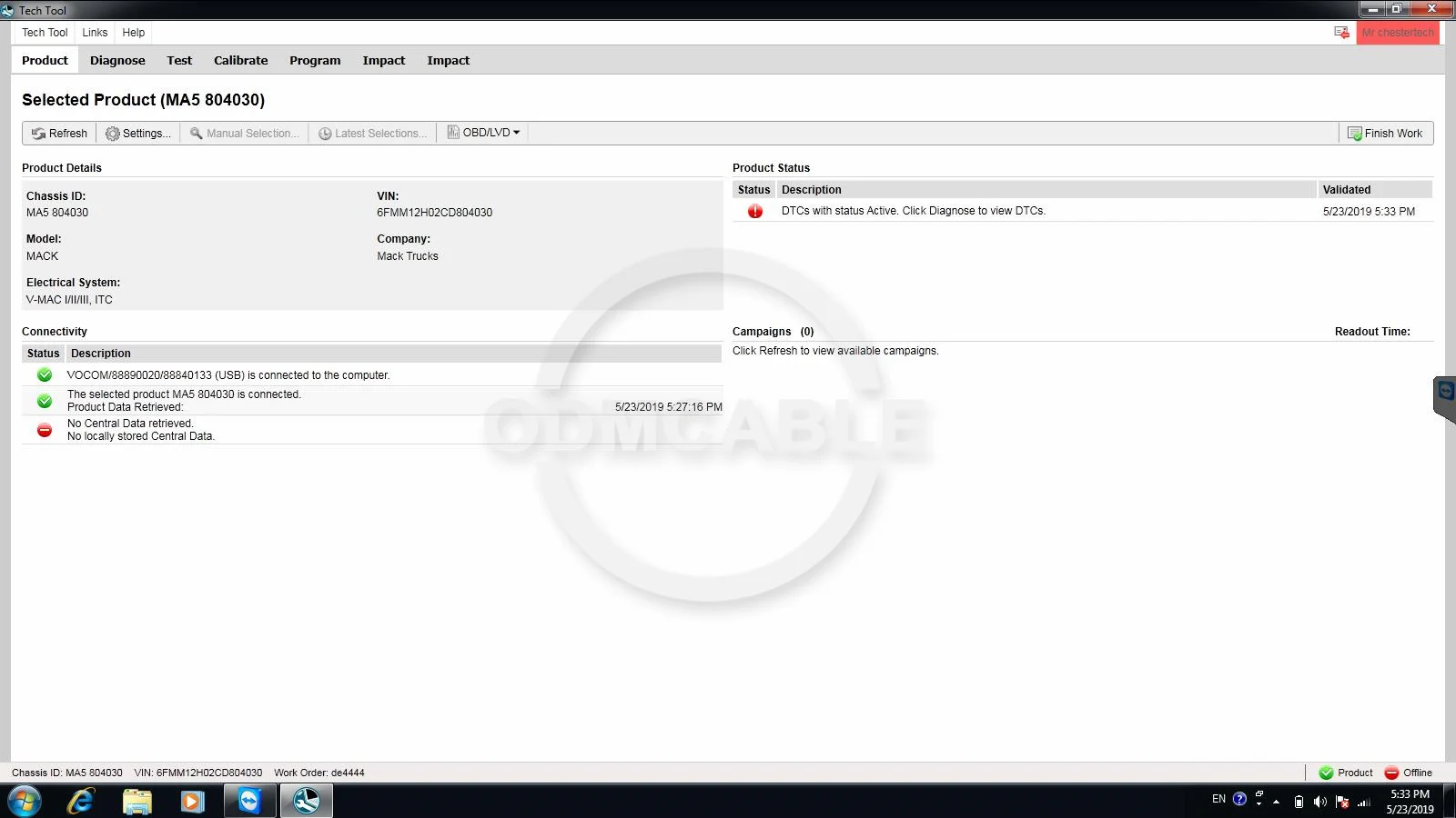 Реальное тестовое изображение Vocom mack:Реальный тест: