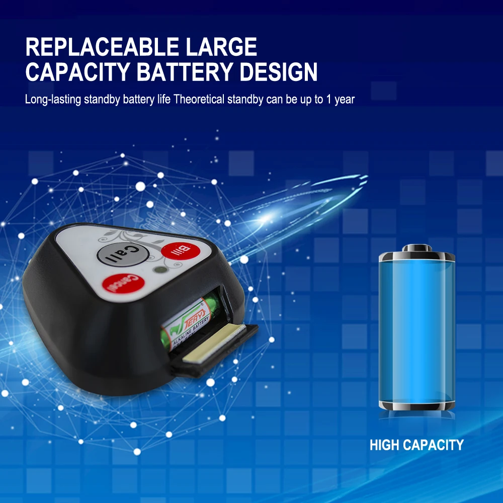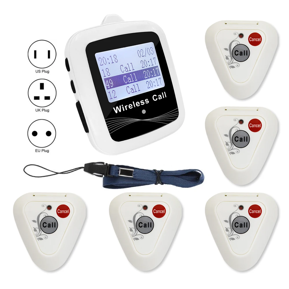 Многоязычный беспроводной пейджер приемника часов в 433,92 МГц для вызова в ресторан, отель, кнопка вызова, зуммер, 1 приемник часов и 5 кнопок вызова