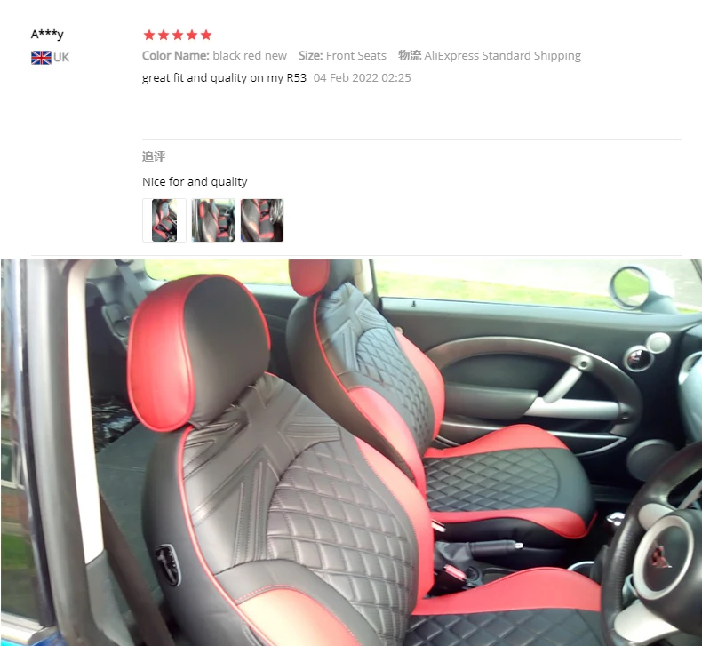 О: подходит для R50 R52 R53 R55 R56 R57 R58 R59 R60. Потому что у него другая модель, поэтому изображение отличается. Ссылка показывает, что это F54 (как образец). Вы можете отправить свои фотографии о автокреслах, я подтвержу их и сделаю их в соответствии с вашими фотографиями.