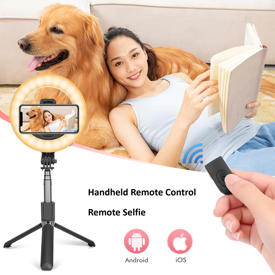 Onvian 4 в 1 светодиодный кольцевой светильник для селфи Беспроводная Bluetooth селфи-палка мини-штативыРучная Выдвижная селфи-Палка с пультом дистанционного управления
