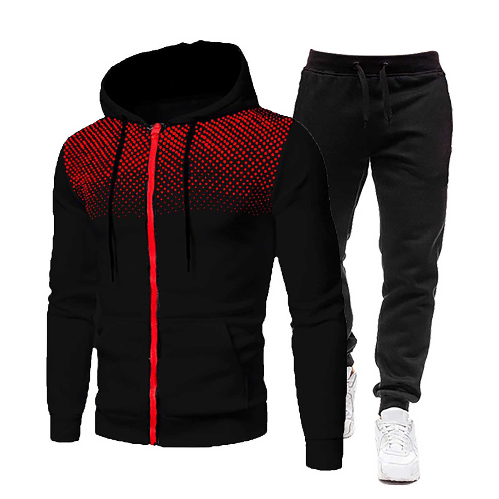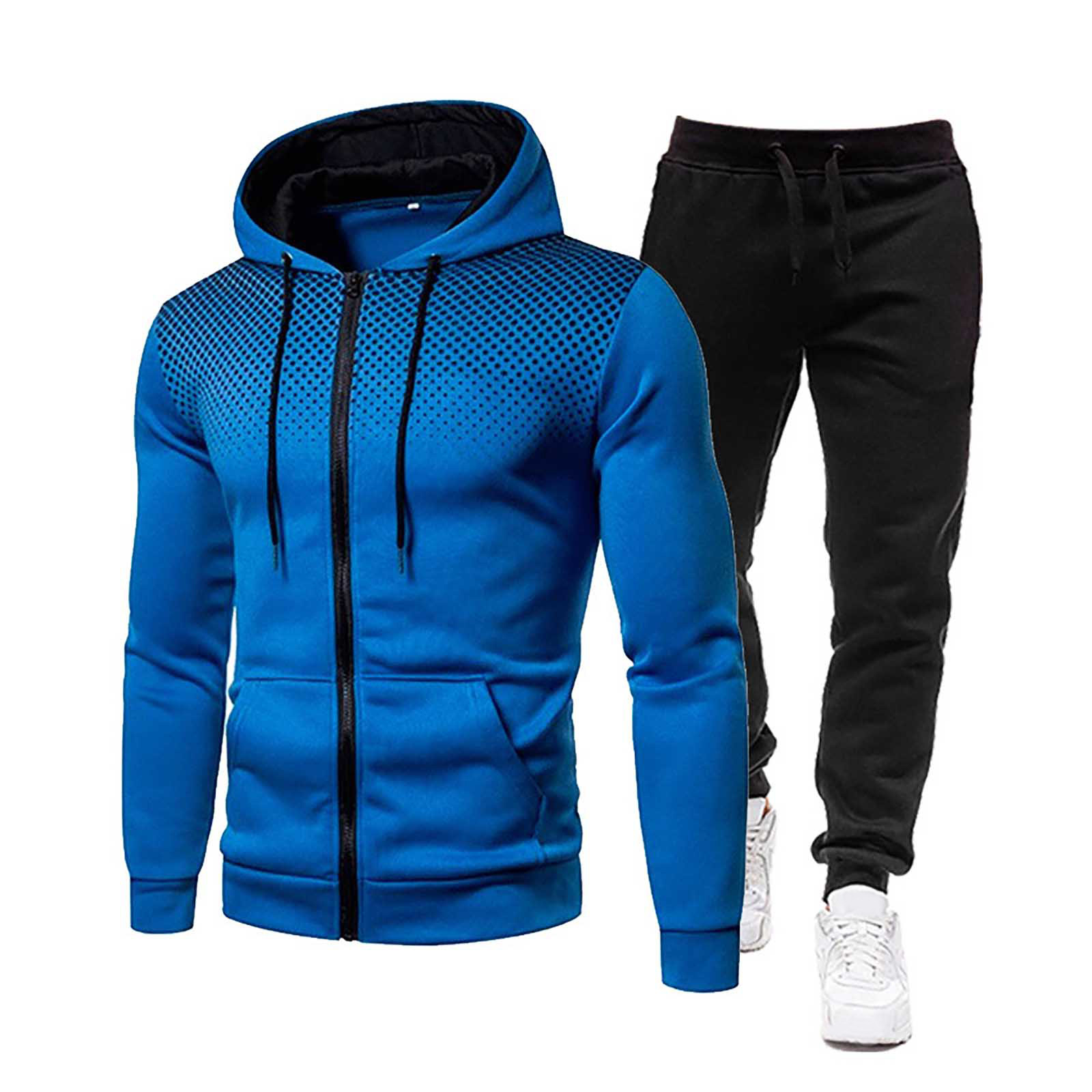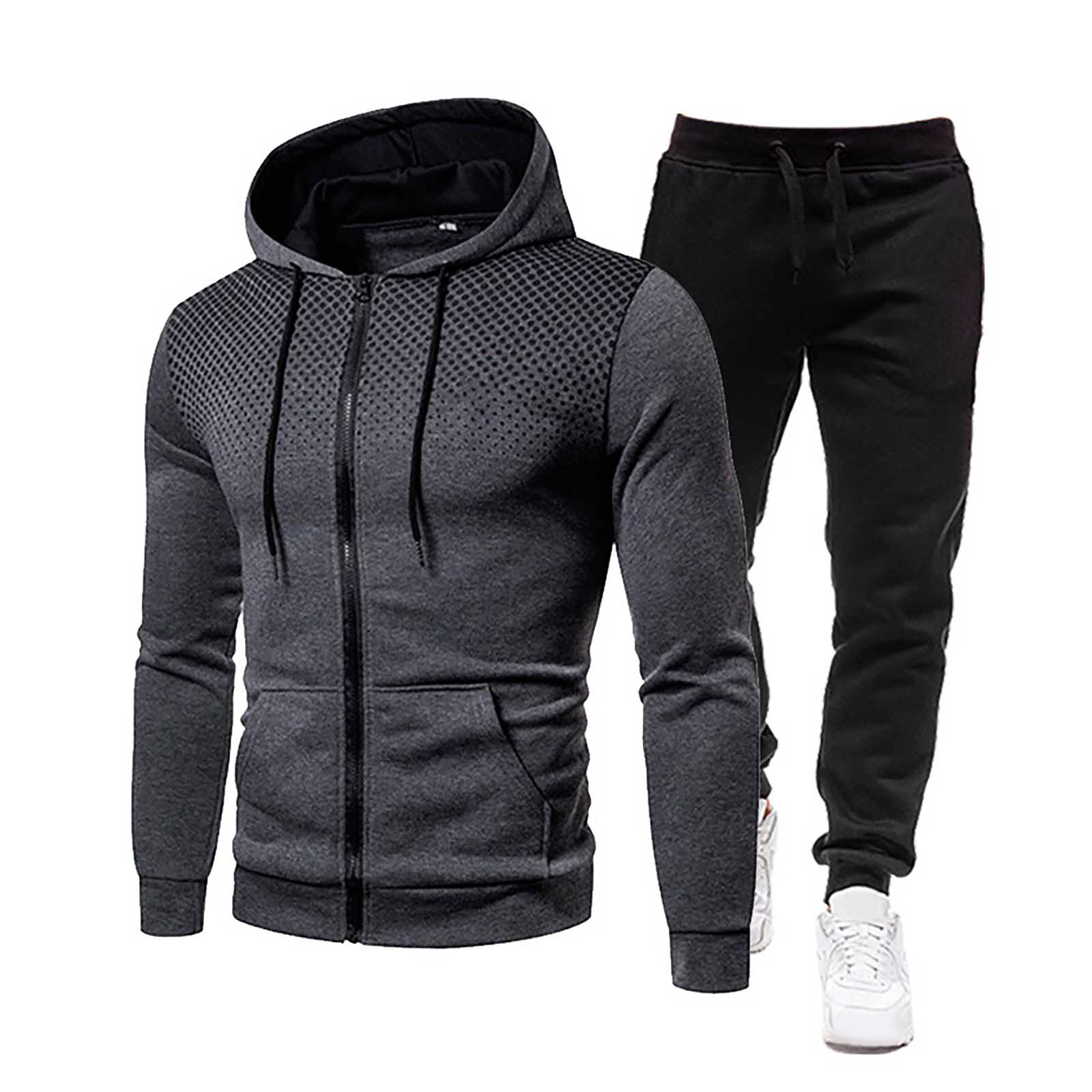 Мужской зимний спортивный повседневный костюм для фитнеса с толстовкой в горошек и штанами