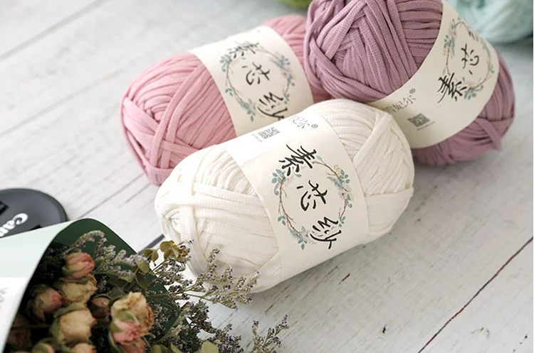 1: эта пряжа Плоский пряжи, используется для плетения, сумки через плечо, рюкзаки и т. д., нить составляет около 5 мм шириной, обратитесь к использованию крючком 5,0 мм