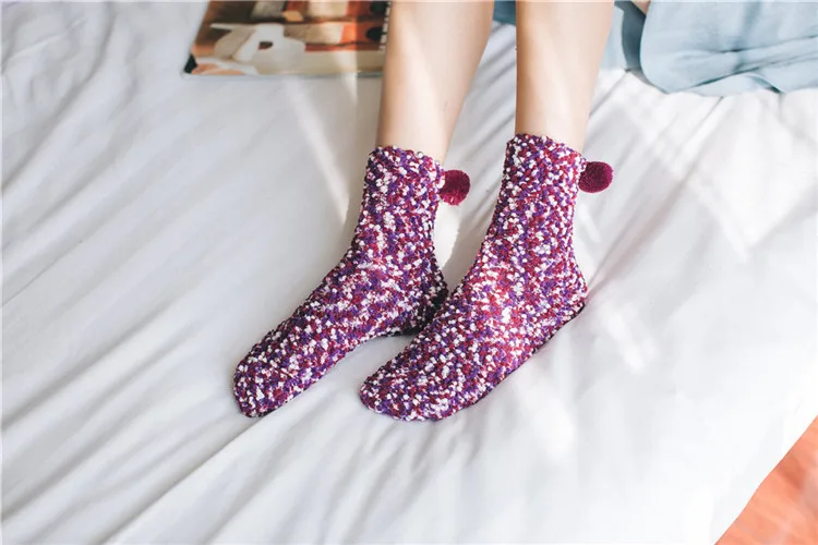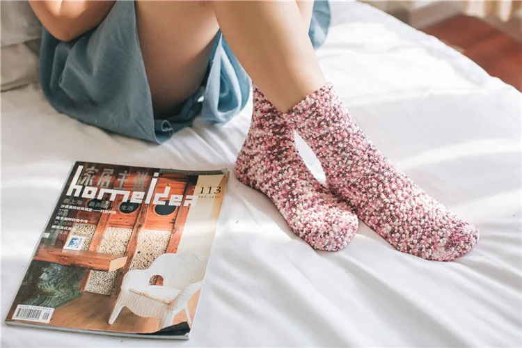 1 пара; Harajuku; Плюшевые Теплые носки; Повседневные милые носки ярких цветов из кораллового флиса; Удобные дышащие зимние домашние носки