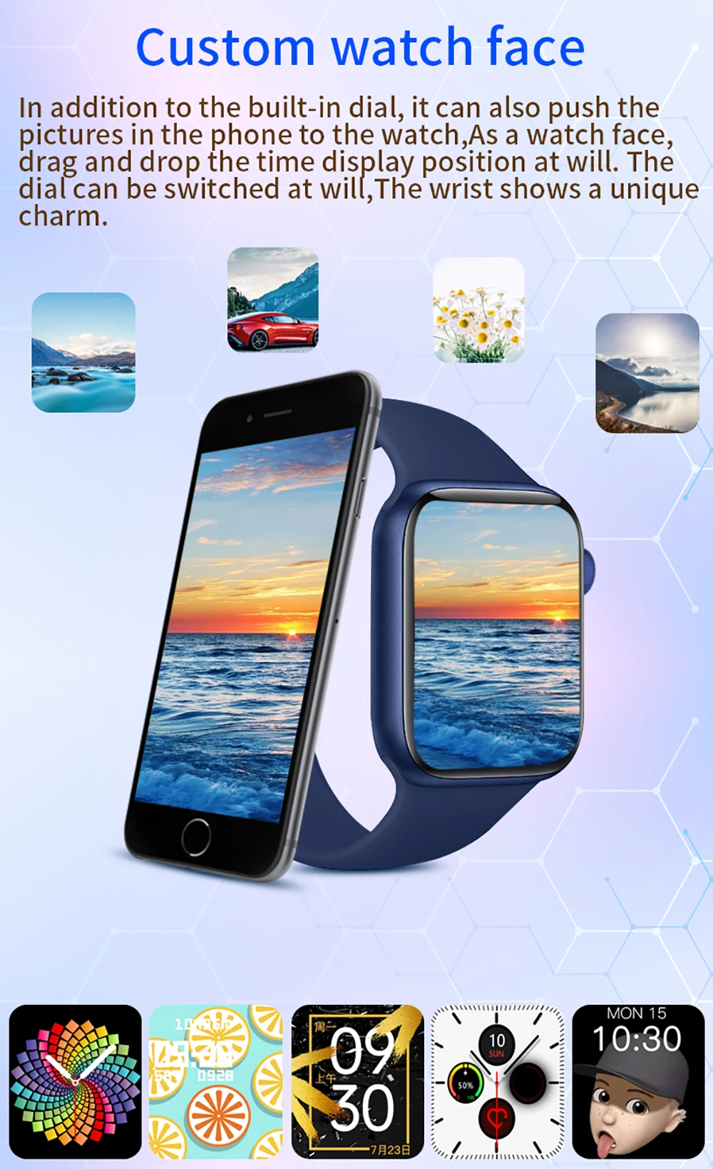 12. Пользовательское лицо часов: вы можете загрузить свои собственные фотографии на часы, как циферблат часов.