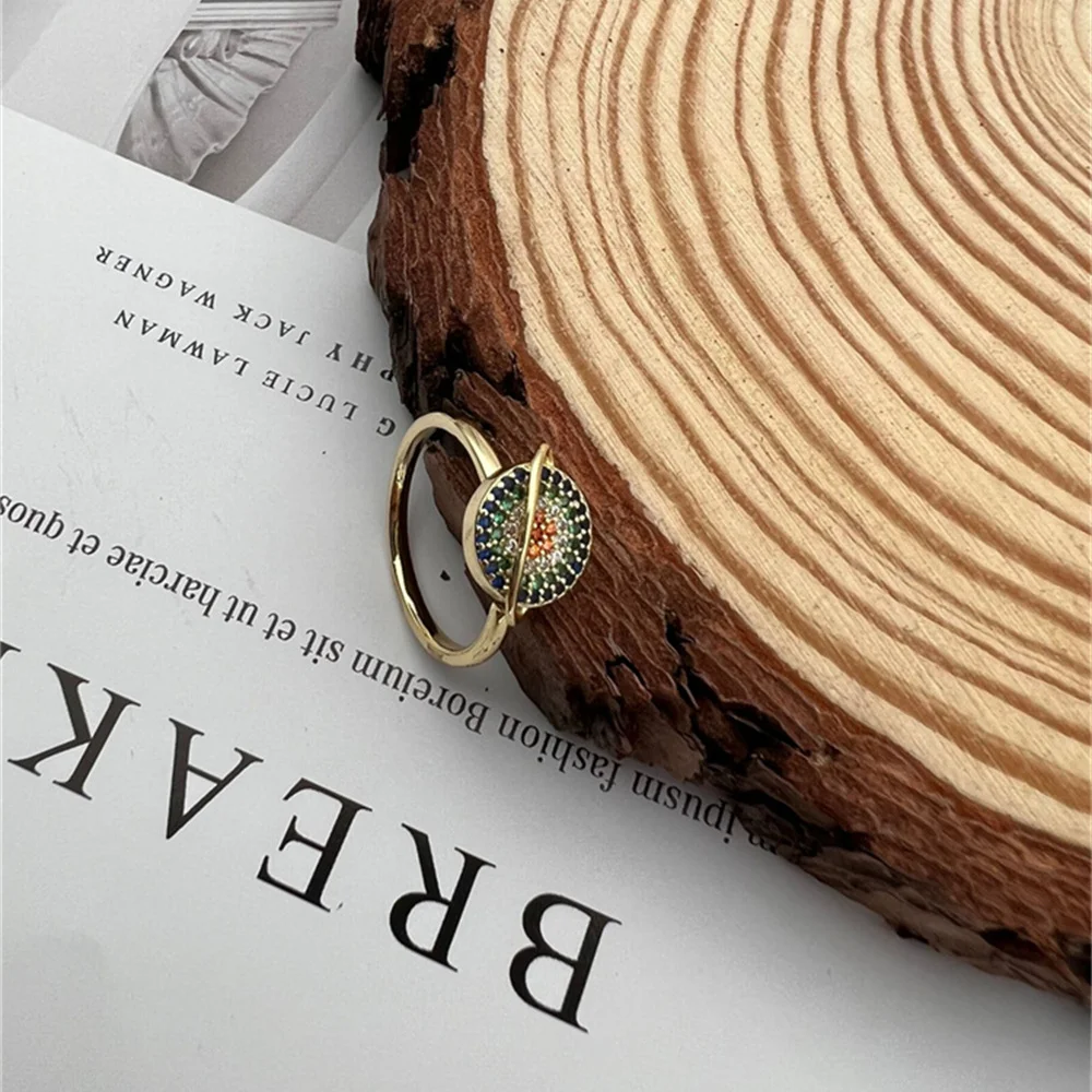 Регулируемое кольцо для беспокойства Spinning Planet с позолоченным медным цирконием