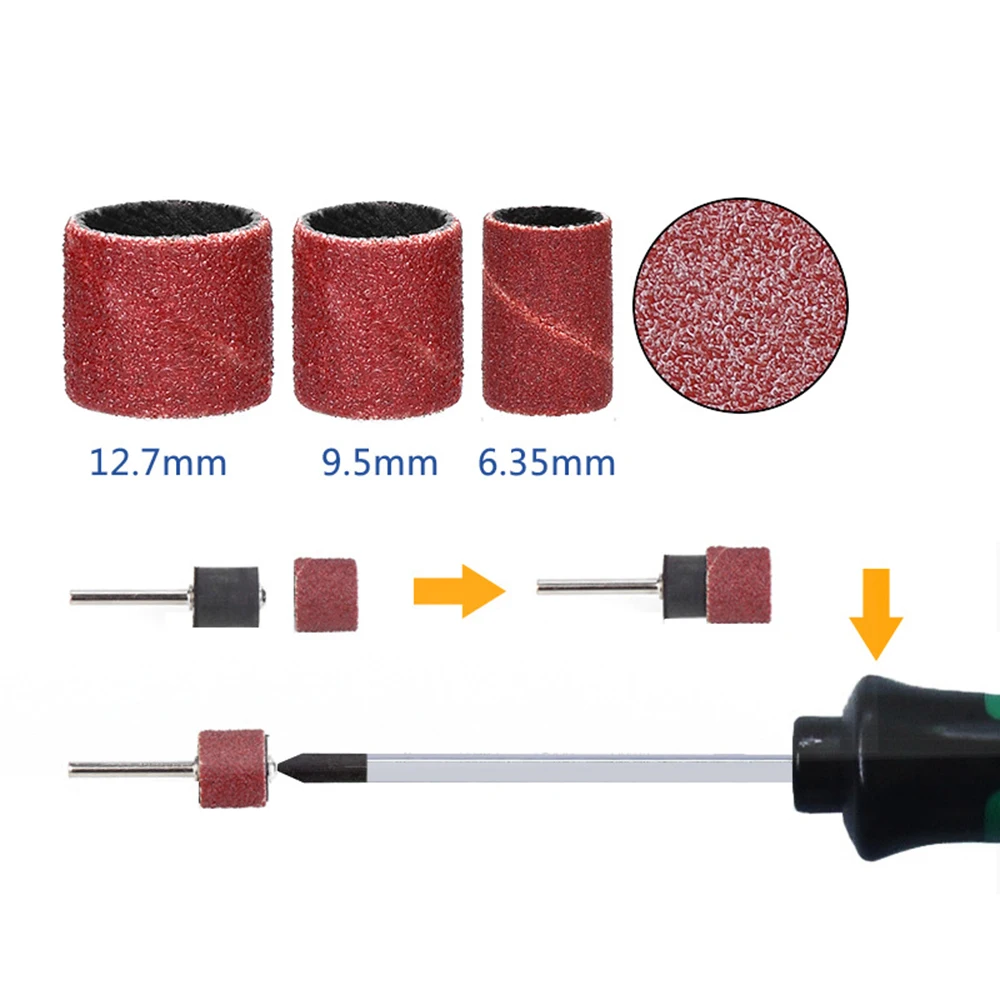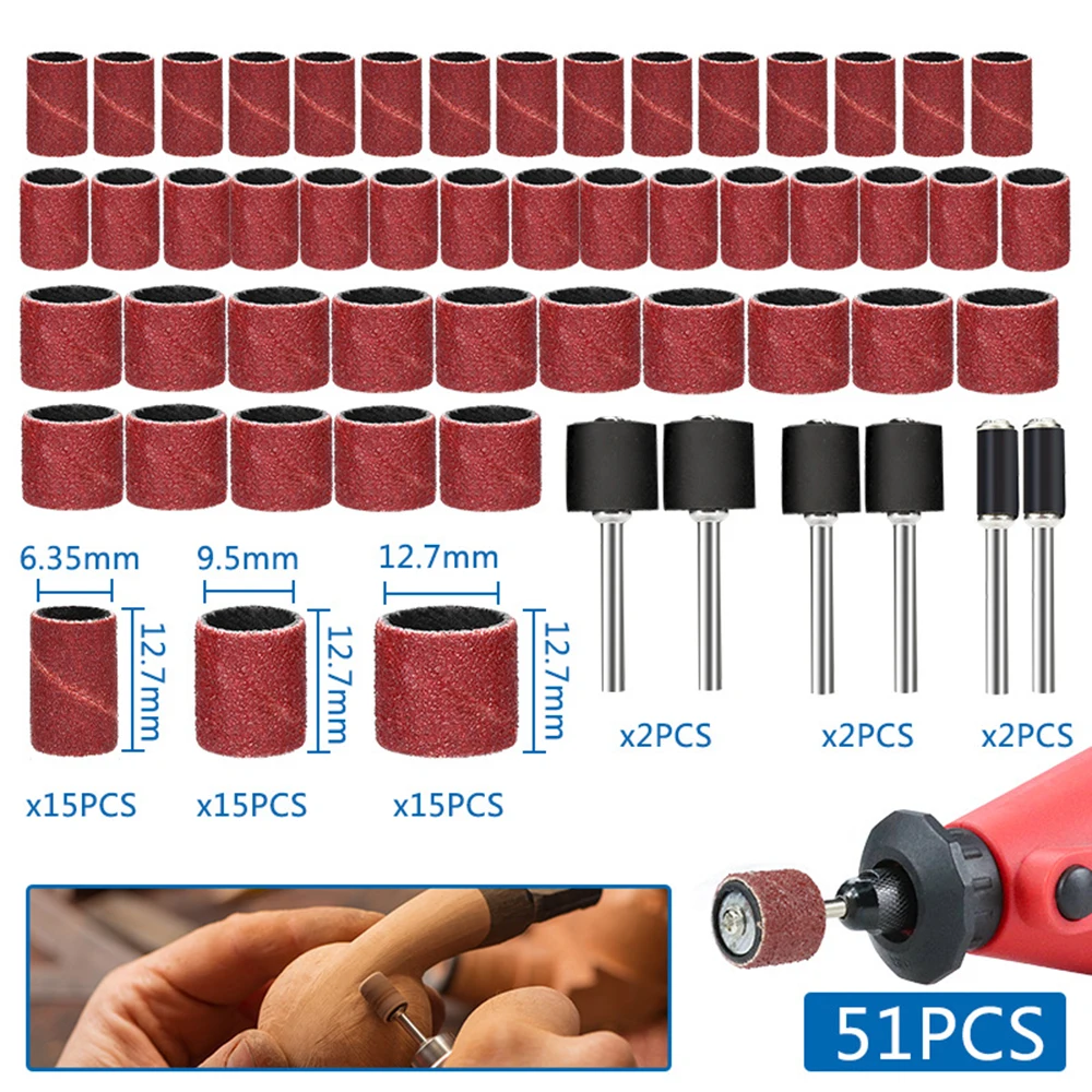 45 шт. Шлифовальные рукава барабанного шлифовального станка с 6 резиновыми оправками для полировки поверхности и сглаживания дерева и металла на художественных работах, деревянных работах и других предметах DIY.