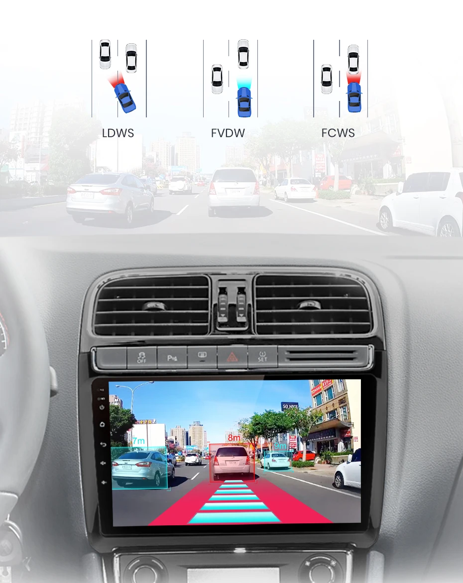 > Функция ADAS: предупреждение об отклонении полосы движения, напоминание о переднем автомобиле и предупреждение о переднем расстоянии.