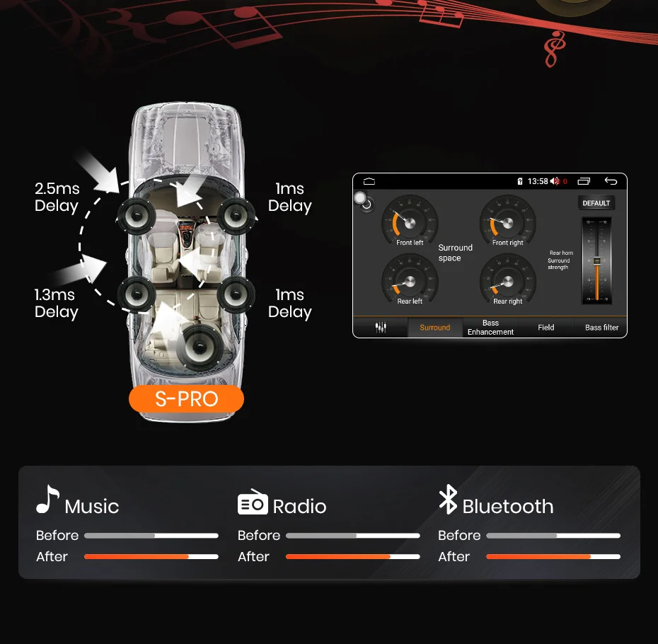 Вы можете настроить звук для ваших личных предпочтений, с 9 графический эквалайзер: поп, рок, джаз, Классическая, без каблука, пользователя, голоса и т. д.