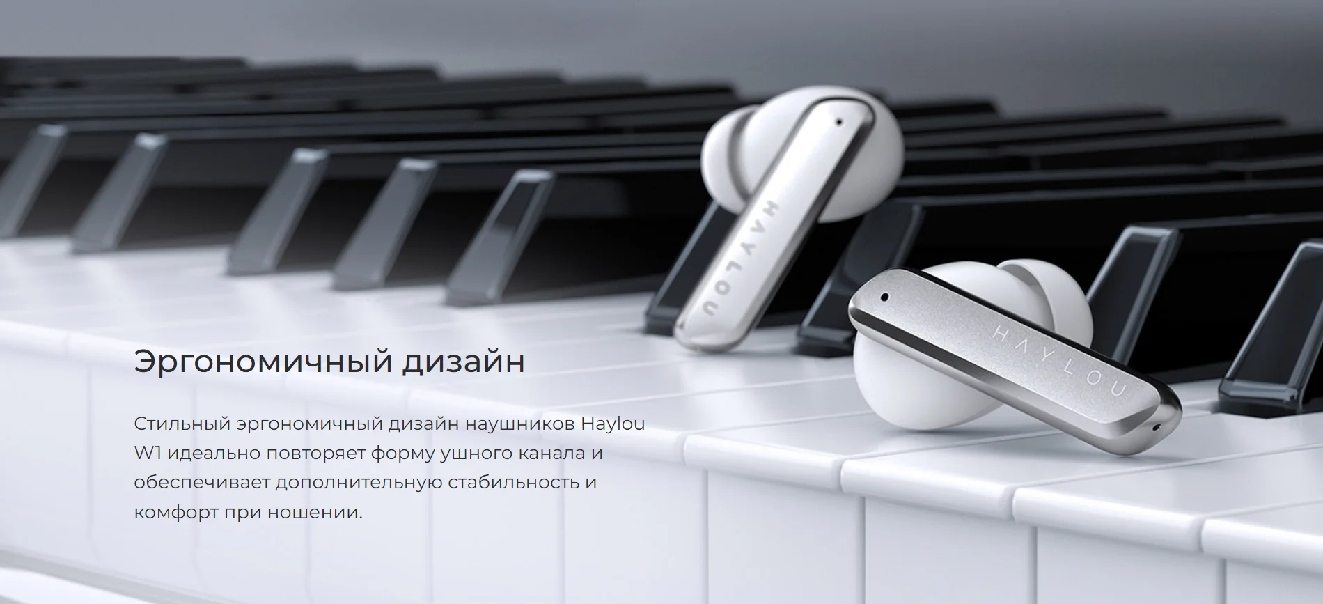 Дизайн наушников Haylou W1 создан с нуля, из-за чего их эргономика существенно возросла. Новый форм-фактор позволяет Haylou W1 плотнее прилегать к стенкам ушного канала, обеспечить мягкость и комфорт при носке в течение длительного времени, а также улучшить эффект пассивного шумоподавления. Конструкция амбушюр сочетается с мягким и приятным для кожи материалом, который при этом защищает их от выпадения.