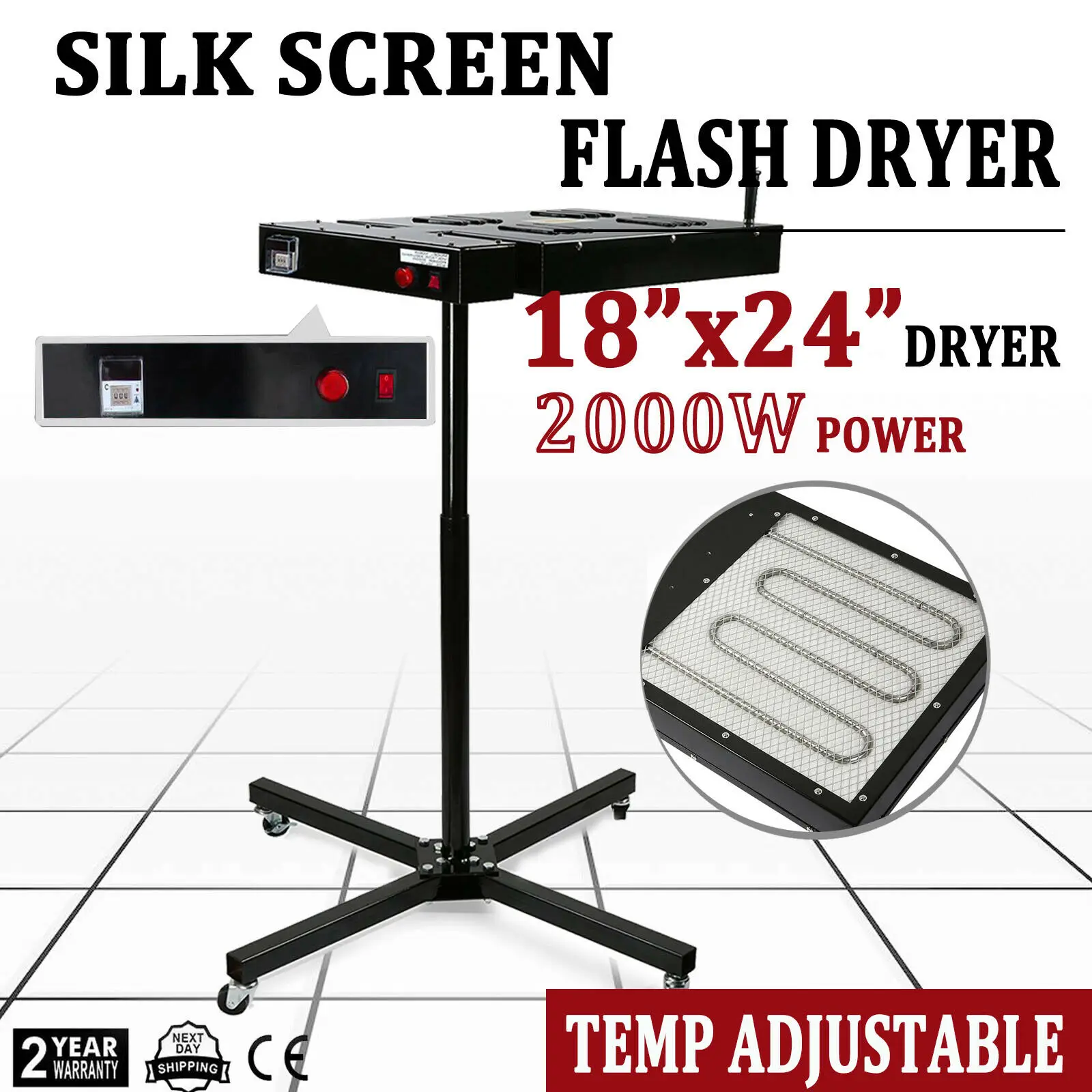 Это профессионально построенная совершенно новая сушилка для вспышки. Он имеет отверстие нагревательной сетки 18 "x 24", колеса и нет специальной проводки. Этот блок может быть поднят или понижен с 24 "до 43". Это очень тяжелая работа. Вспышка сушилка трафаретной печати является важным оборудованием в процессе печати, особенно в многоцветной печати. Вы можете быстро высушить чернила для печати следующего цвета с помощью сушилки для вспышки. Вам не нужно ждать, пока чернила высохнут, если у вас есть. Кроме того, он использует панель с сотнями проводов, протекающих через него, чтобы обеспечить стабильное тепло по всей площади нагрева. Основа совместима с нагревательной коробкой, стабильной, экономит место и преодолевает дефекты, вызванные традиционными «магнитами», которые легко стучатся и застревают. После хорошо установленной установки подключите источник питания и включите переключатель, а затем он будет работать автоматически.