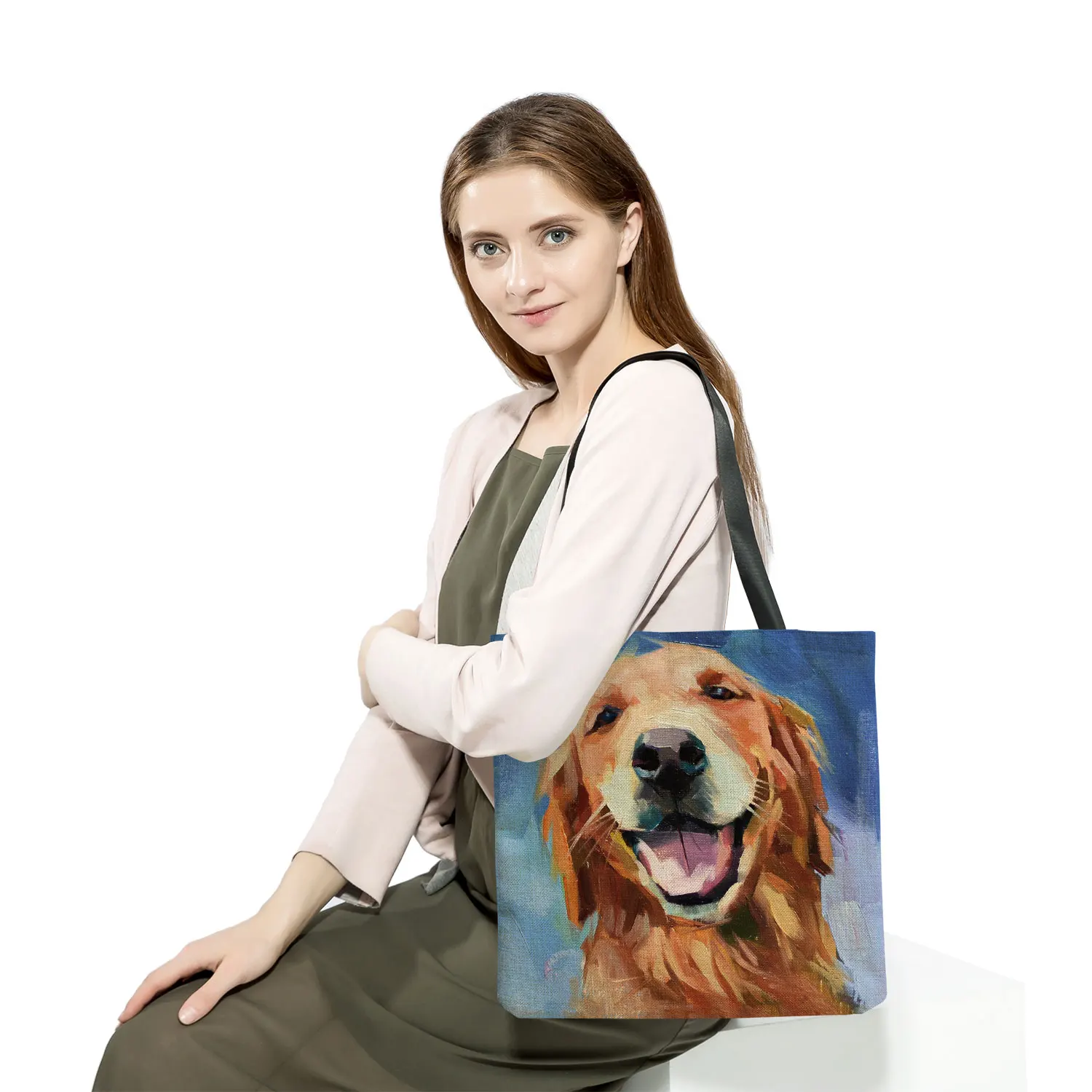 Эксклюзивные сумки для покупок с изображением собаки и маслом для продуктов, Папильон, мопс, ретривер, женская сумка на плечо, большая емкость