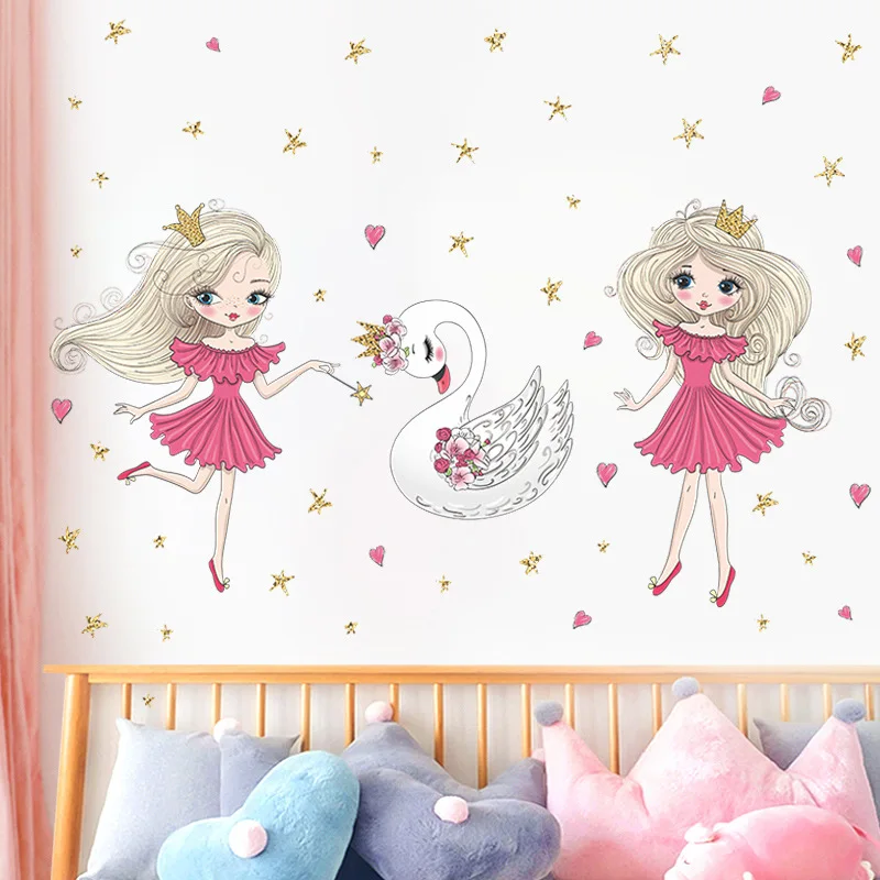 Красивые настенные наклейки с лебедем для девочек, украшение для комнаты, для детей, для гостиной, спальни, дома, декоративные художественные настенные наклейки для плакатов