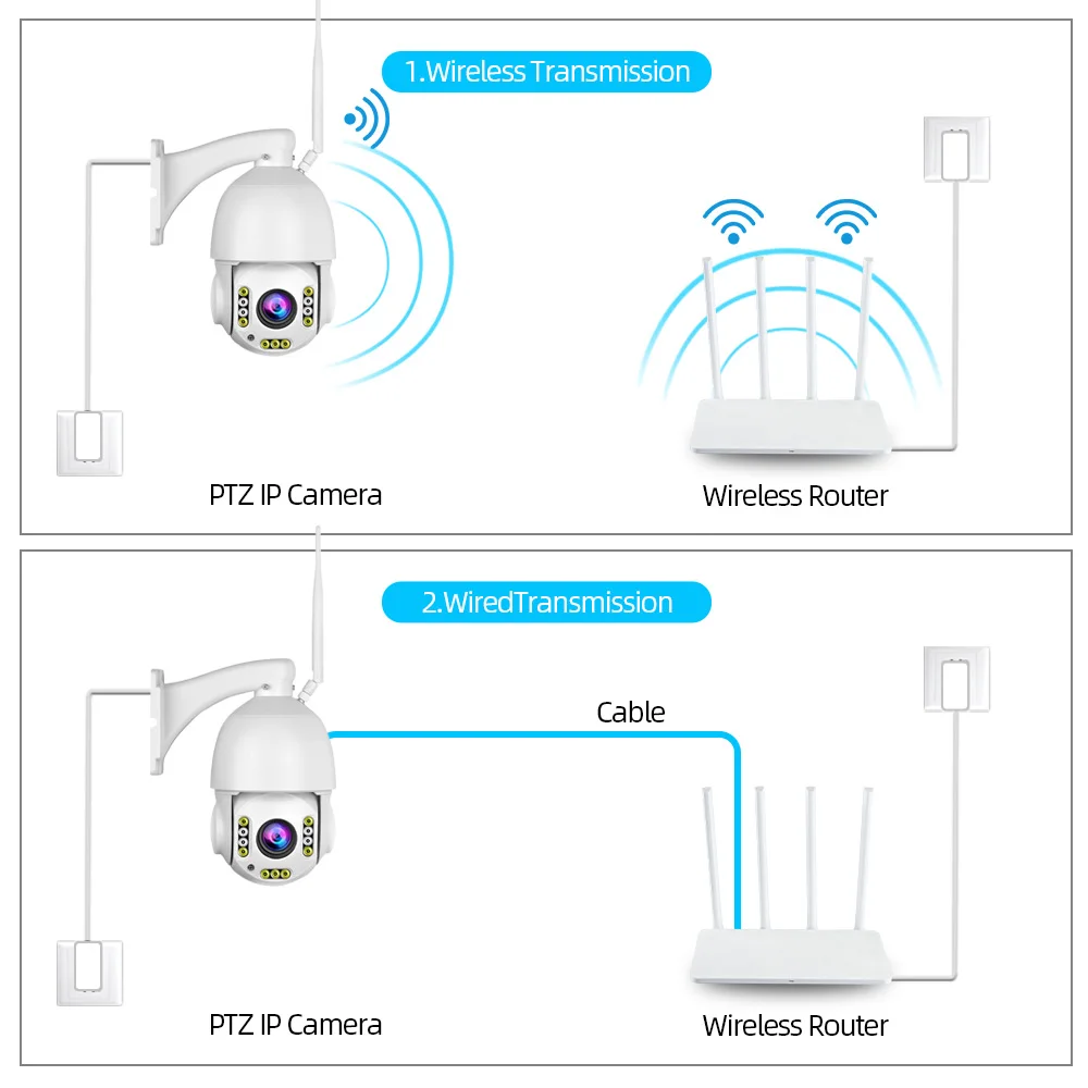 Вы можете выбрать удобное соединение в соответствии с вашими потребностями. Иногда у вас может быть только один способ подключения камеры. Не волнуйтесь, эта камера поддерживает беспроводные и проводные соединения.