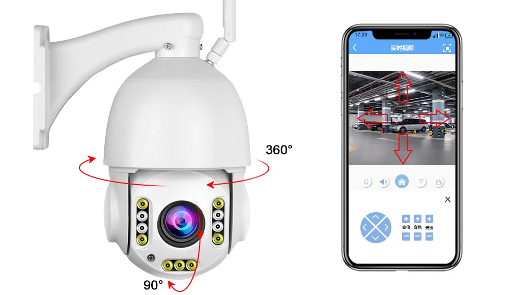 Вращается на 360 ° по горизонтали и на 90 ° по вертикали. Вы можете управлять им непосредственно в приложении, когда захотите и где бы вы ни находились.