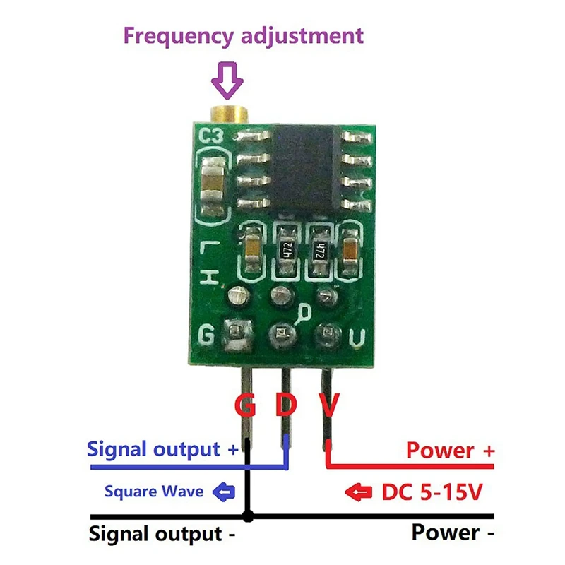 1. Выходной терминал выходного квадратного волнового сигнала, амплитуда приблизительно равна входному напряжению.