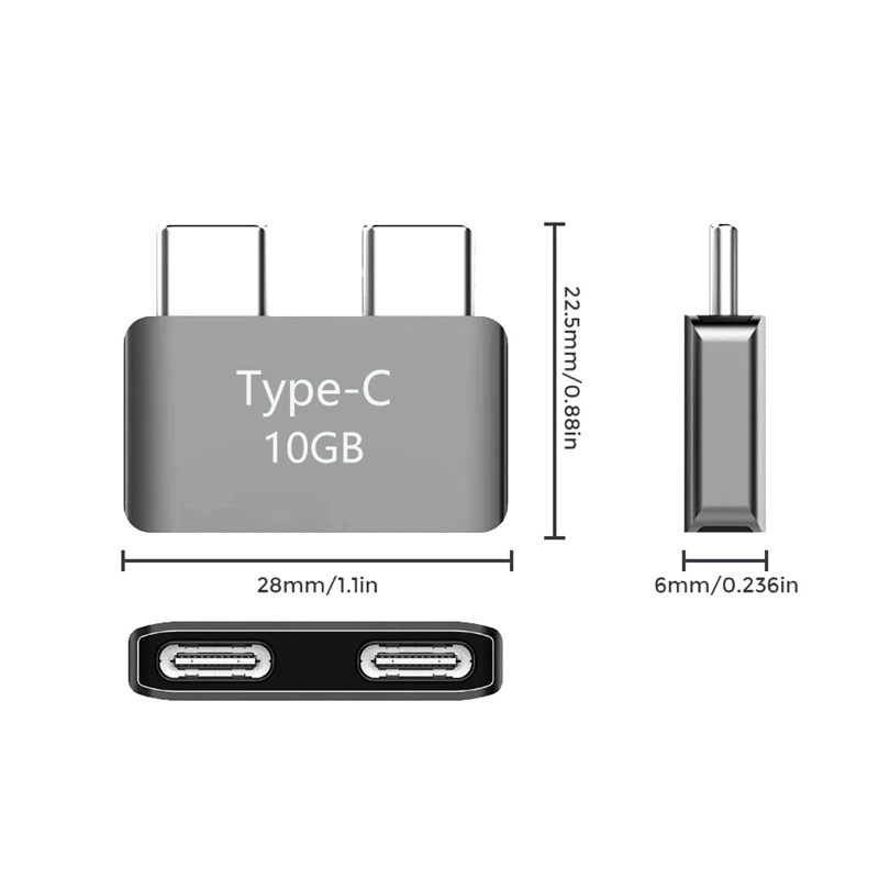 Короткий удлинитель с двумя типами C, USB-C Удлинительный адаптер с 3 разъемами для мужчин и женщин, видео для Pro & Air