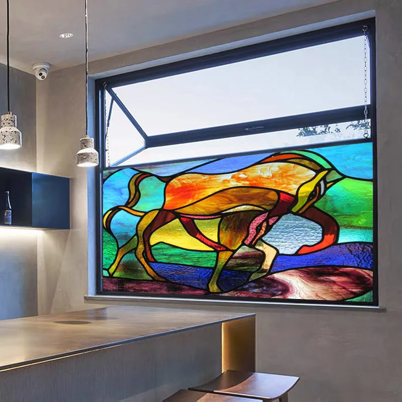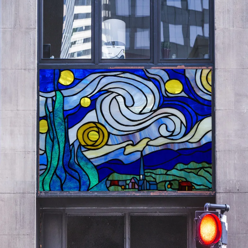 Статическое прилипание (без клея), прозрачный, легко устанавливается и лучшее качество, задняя поверхность такая же, как передняя поверхность. Фактический цвет продукта тусклый, чем на картинке, он матовый. Общественности не может видеть снаружи, и светильник может пройти все же.
