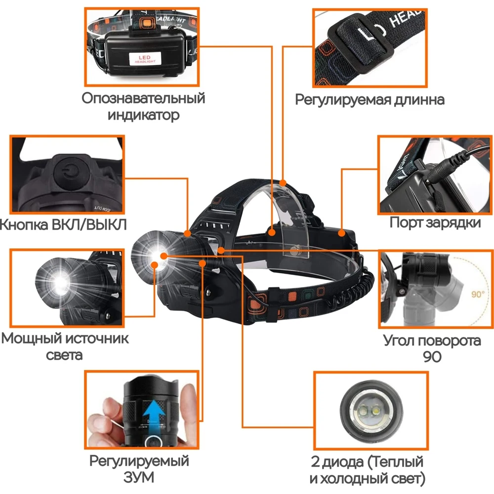 The main advantages and features of the headlamp: