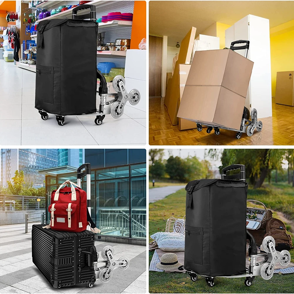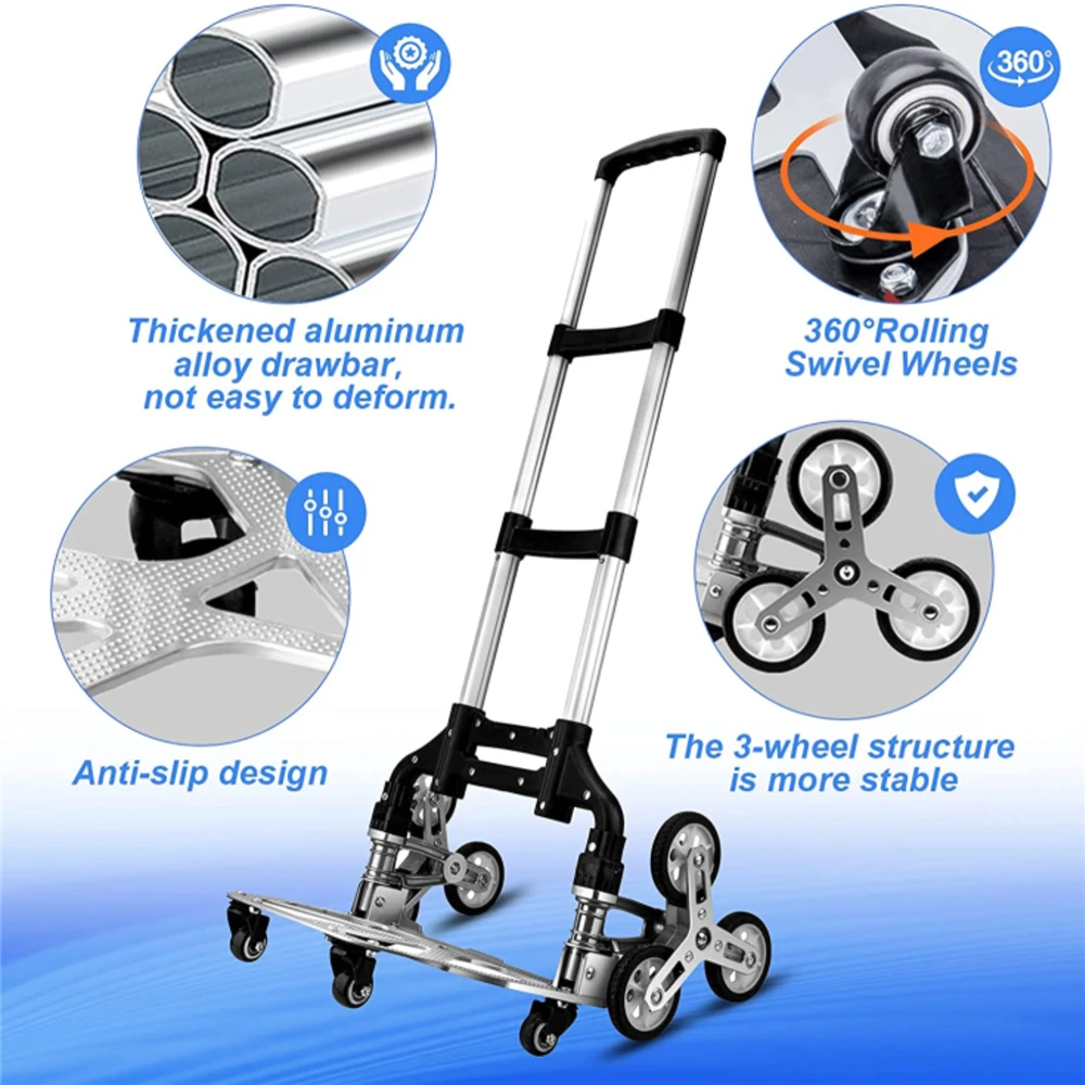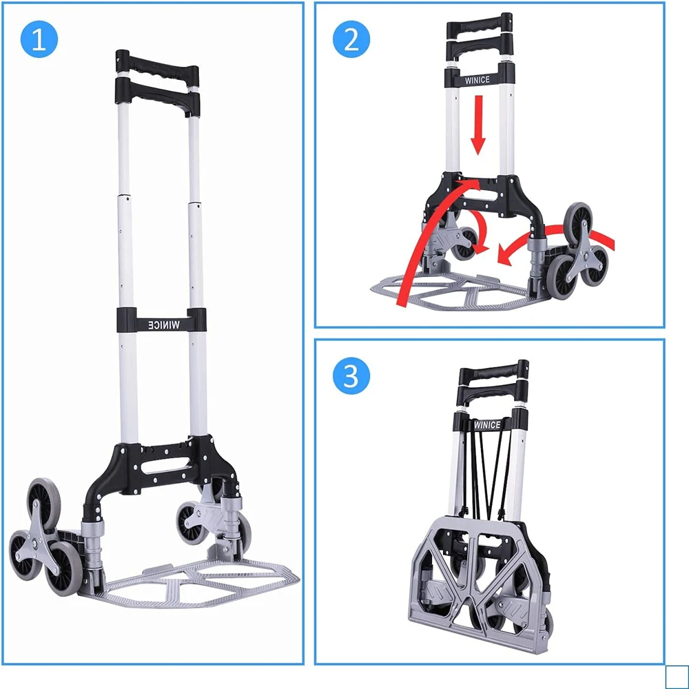 ★【 TRI-CLIMBING колеси】-оснащен 6 колесами для скалолазания, ручной грузовик освобождает вас от проблем, вызванных скалолазанием лестницы, когда доставляет тяжелые предметы дома. Кроме того, есть 4 универсальных колеса на дне, что облегчает вам нажимать тележку на землю, чтобы сэкономить больше усилий.