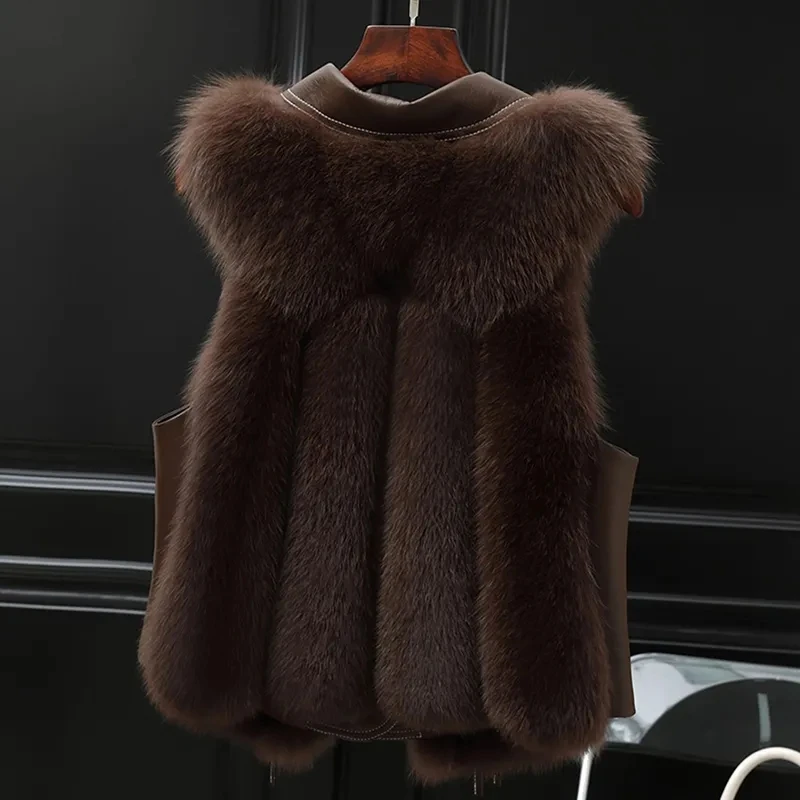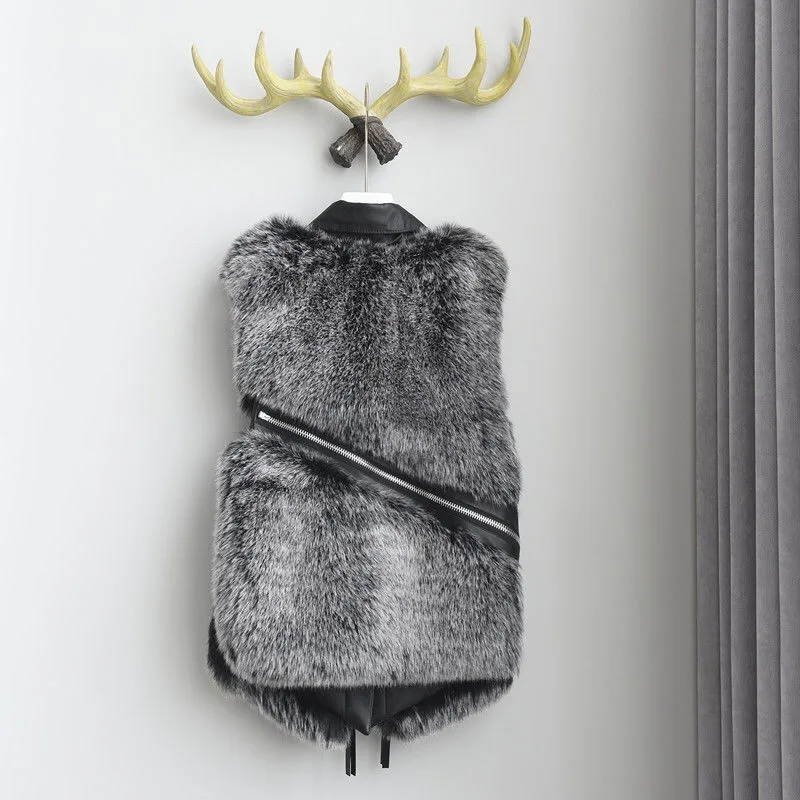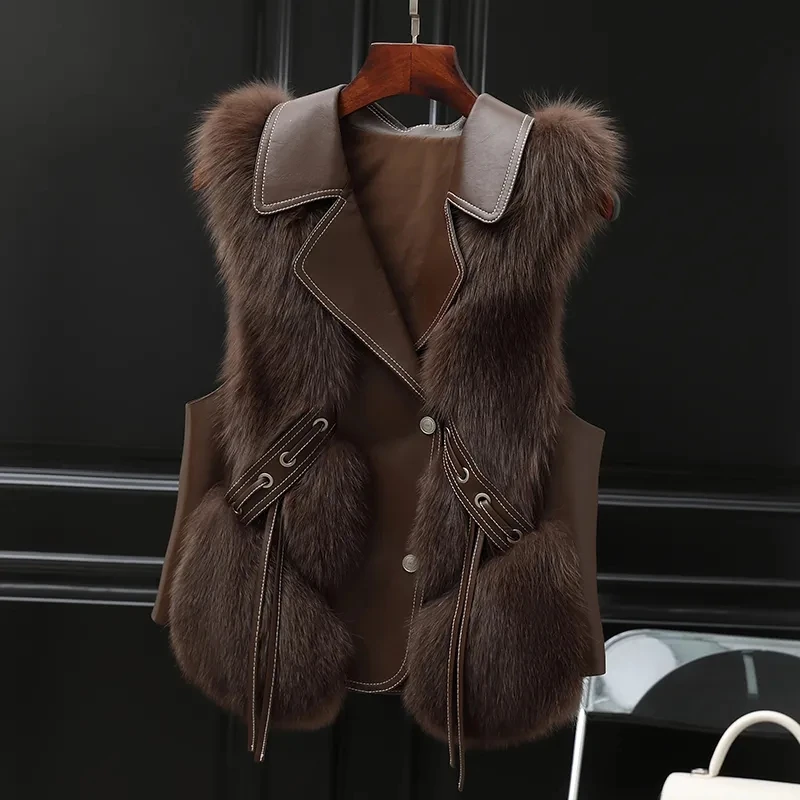 2021 жилет из искусственного меха, Женское пальто с отворотом, без рукавов, с пряжкой, зауженного размера плюс, верхняя одежда из искусственной кожи, уличная плюшевая меховая цельная куртка