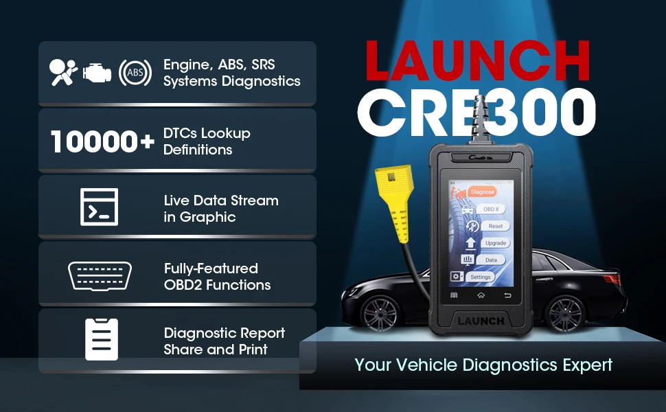 ��【ABS&SRS&Engine Diagnosis】 The Launch CRE300 OBD2 code reader dives deep into the engine, ABS, and SRS to read/erase the diagnostic trouble codes and view data stream and ECU information. It is universally applicable to the world. Its coverage is not restricted to some countries but refers to worldwide compatibility. For the specific models supported by CRE300, please refer to the attached Application Guide.