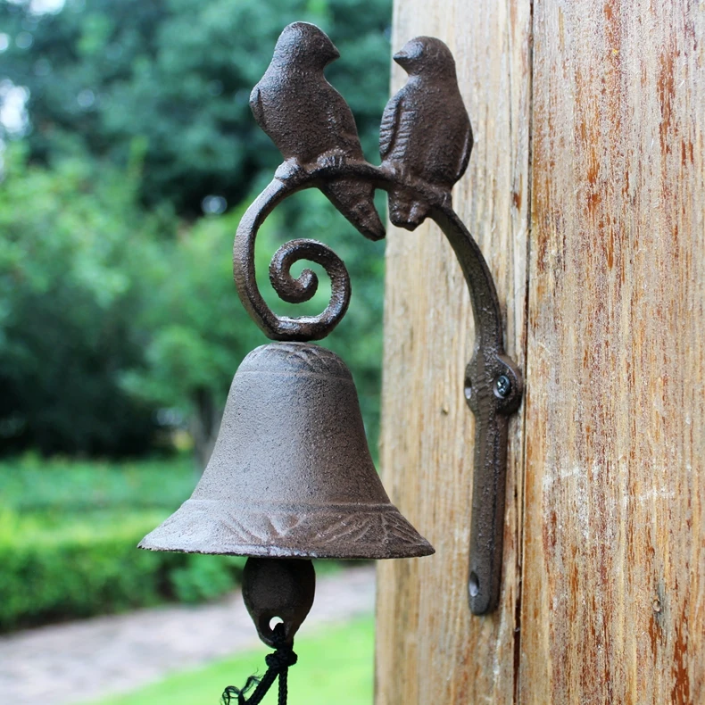 Деревенский дверной звонок: Этот колокольчик оснащен изящным столбом, который крепится к любой стене, очаровательной парой птиц на спине и миниатюрным колокольчиком с длинной веревкой для функций, милое дополнение к любому интерьеру двери в вашем доме.