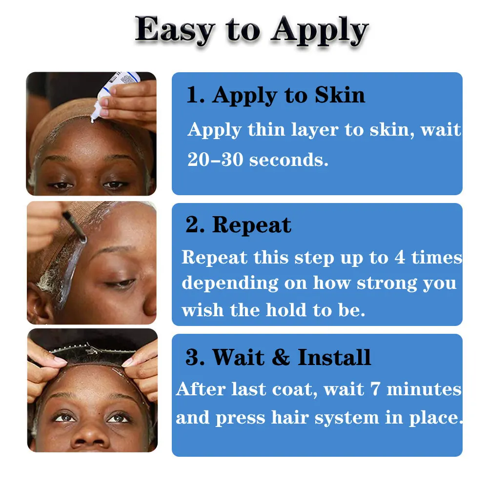 4. Peace of mind when wearing a wig or toupee comes when you're able to go about your day without worrying about your hair system moving or falling off from natural skin oils or wetness. Our bonding glue is waterproof and oil-resistant to help ensure your hair looks and feels as natural as possible!