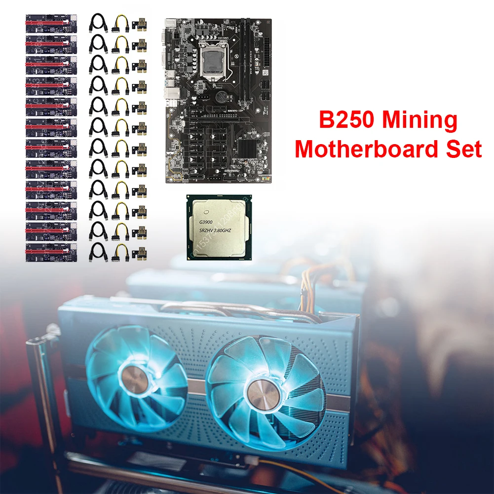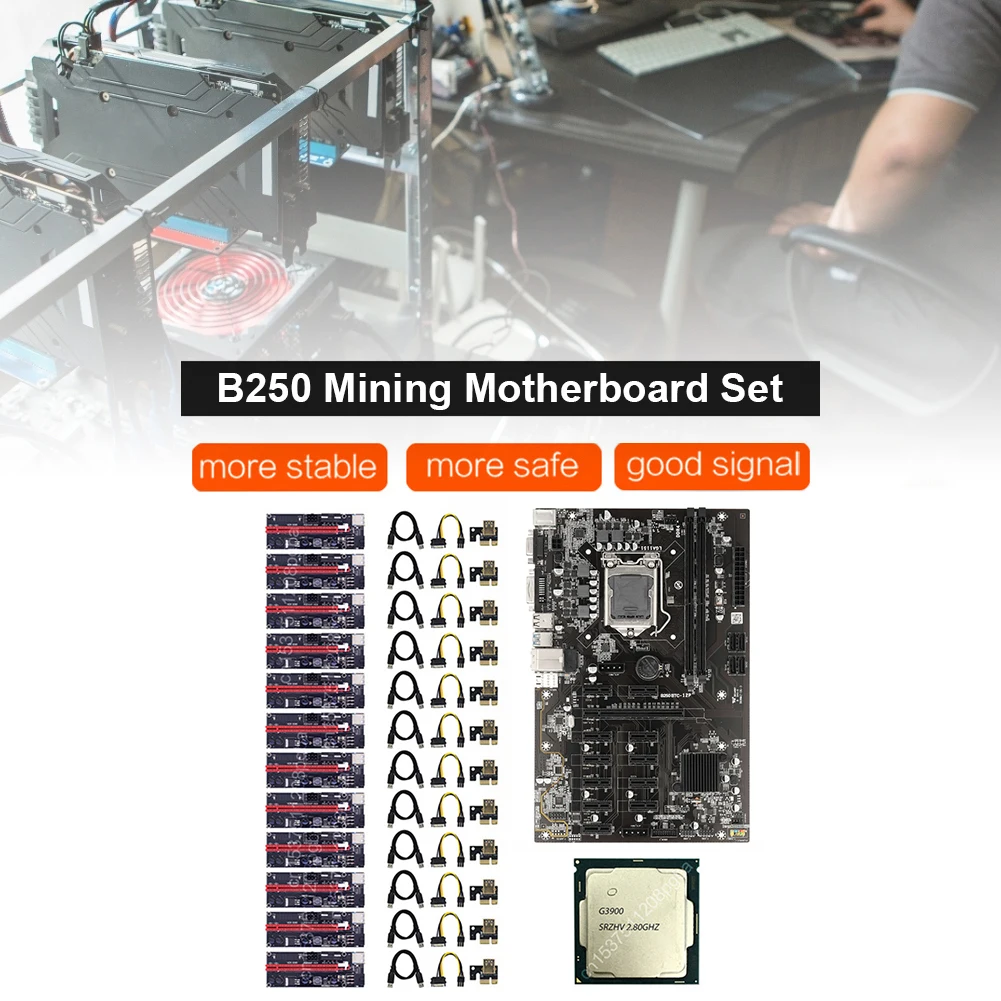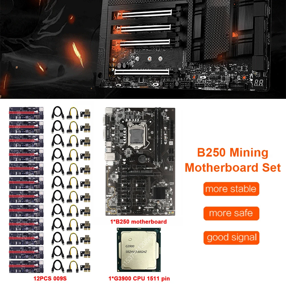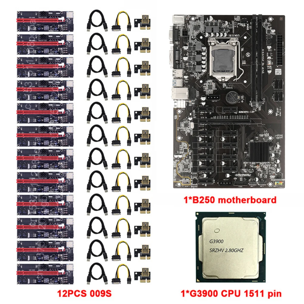 B250 BTC 12P Mining материнская плата + G3900 CPU + 12x009S адаптер карта DDR4 Miner плата комплект LGA1151 PCI-E X16/X1 USB2.0/3,0 SATA3.0 PCI-E в набор конвертеров PCIE