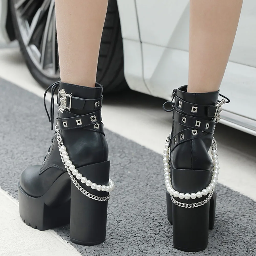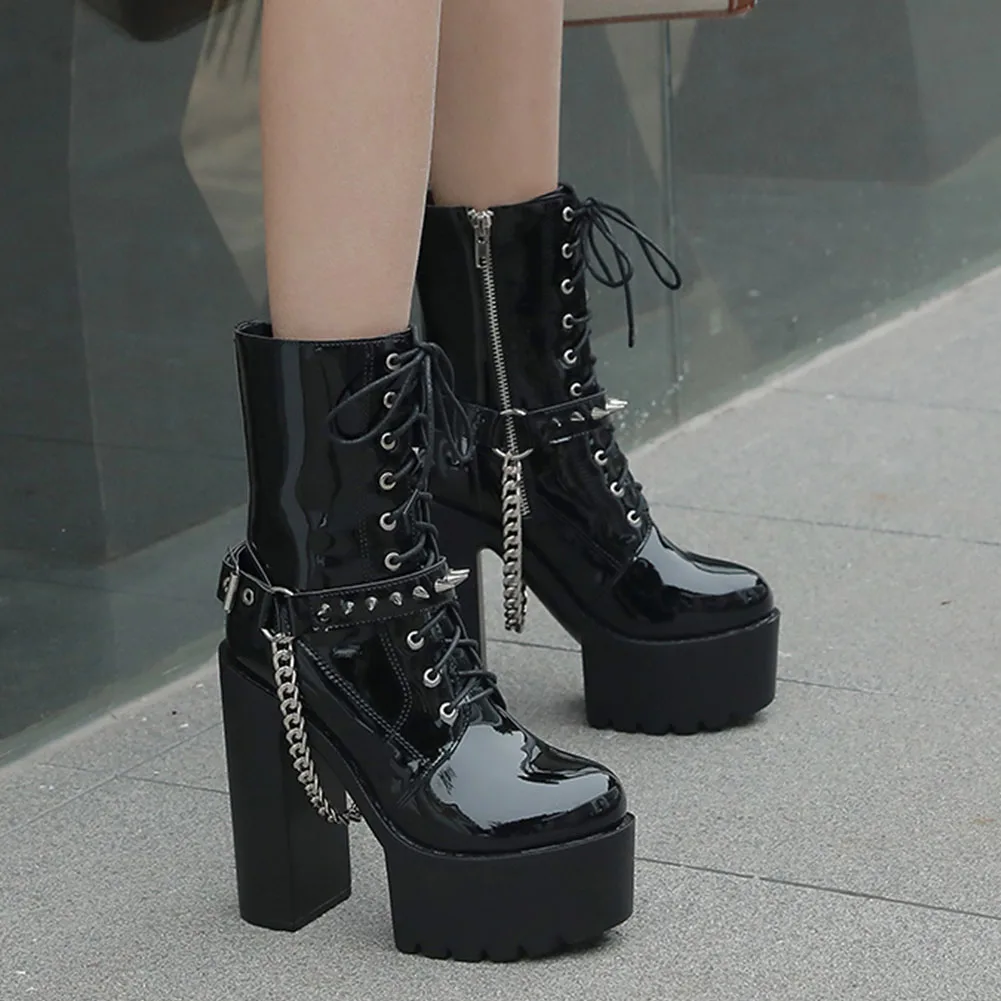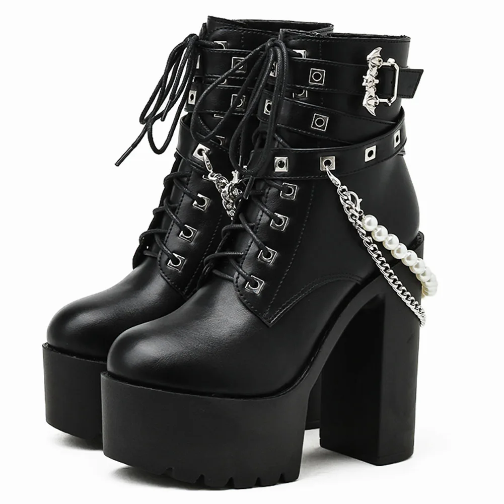 Женские ботинки для женщин; Коллекция 2021 года; Обувь на платформе и танкетке с цепочкой; Женская обувь в готическом стиле; Новое поступление; Модные женские туфли на очень высоком каблуке